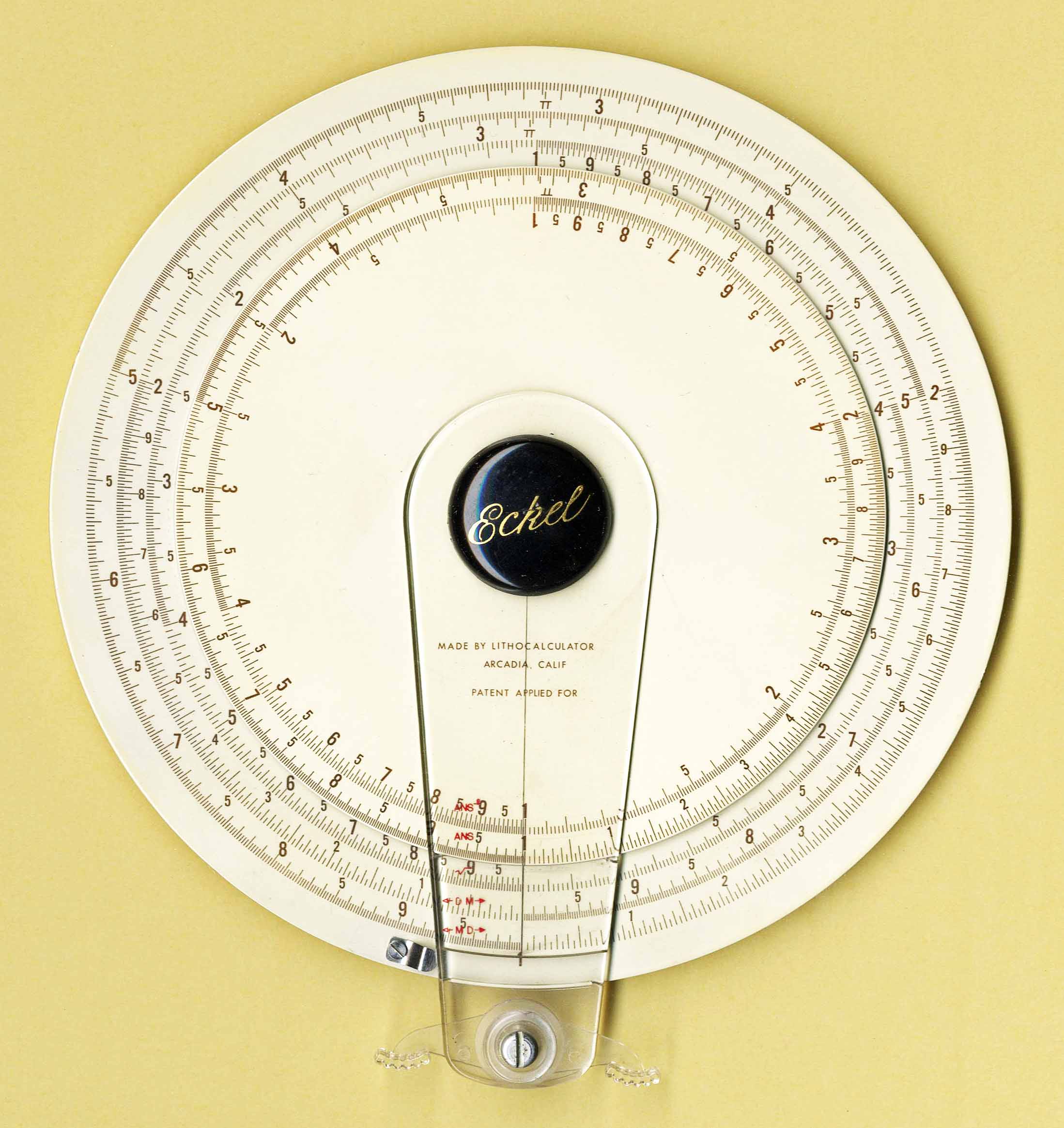 | Disk | Layman | Lithocalculator Co. | U.S.A. | Metal | est. 1955 | Dia. = 21.5 cm | General Purpose |
