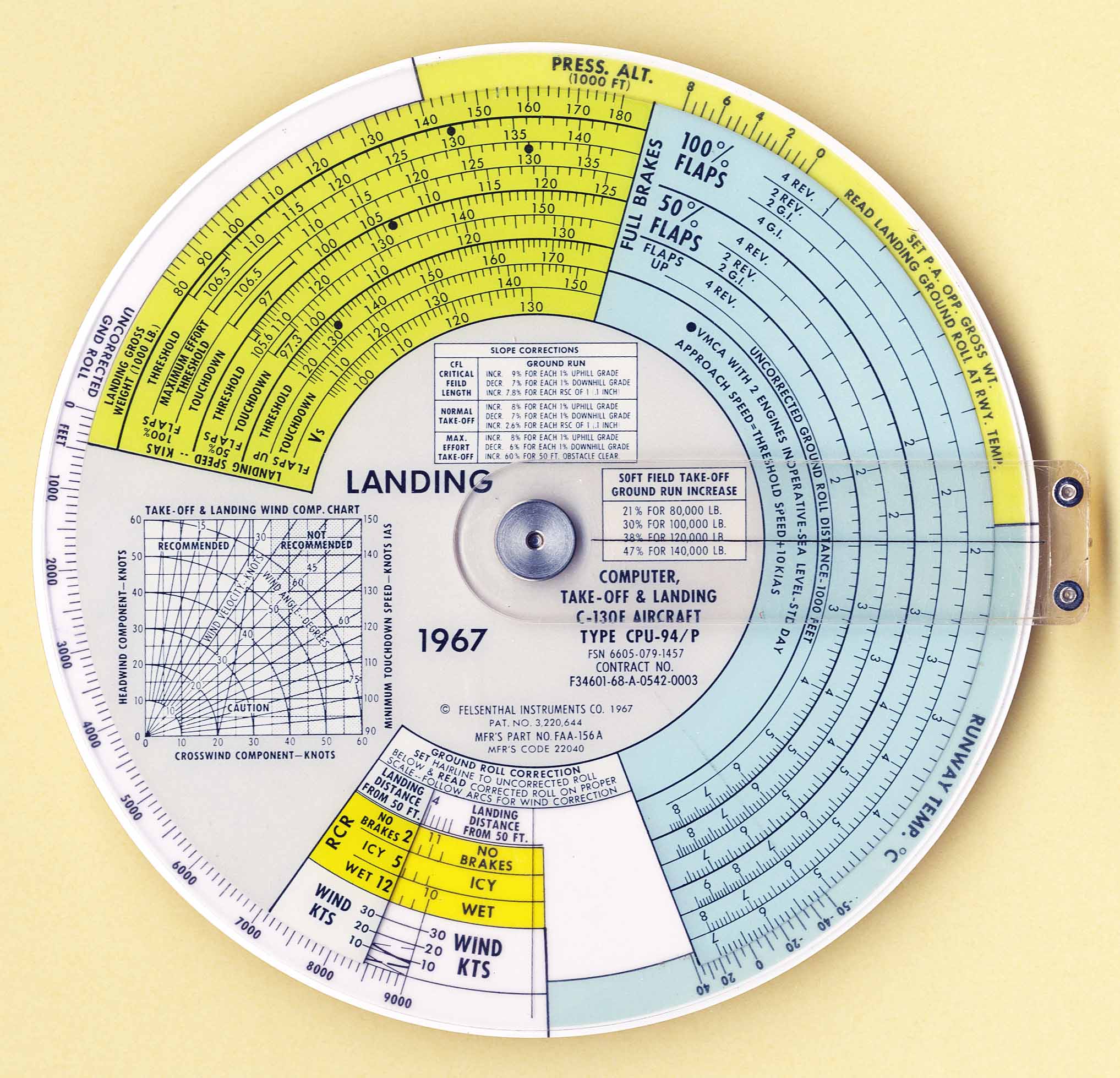 | Disk | Lockheed / Hercules / C-130E | Felsenthal Insturment Co. for U.S. Air Force / CPU-94/P | Plastic | 1967 | Dia. = 15.5 cm | Take-Off and Landing |