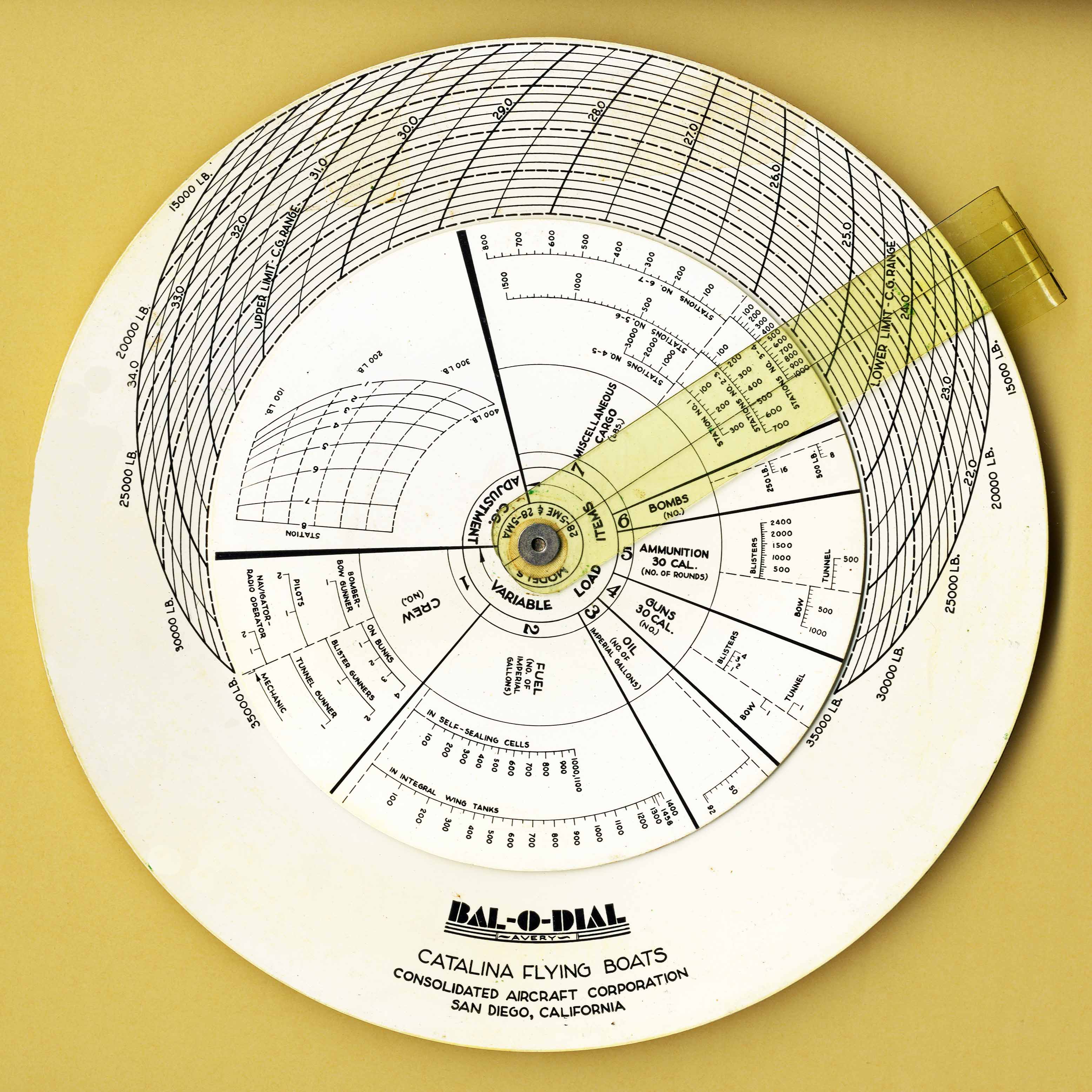 | Disk | Consolidated Aircraft / PBY-5 & 5A / Catalina | Avery (Bal-O-Dial) for Consolidated Aircraft Corportation | Plastic | est. 1940's | dia. = 24.7 cm | Flight Management |