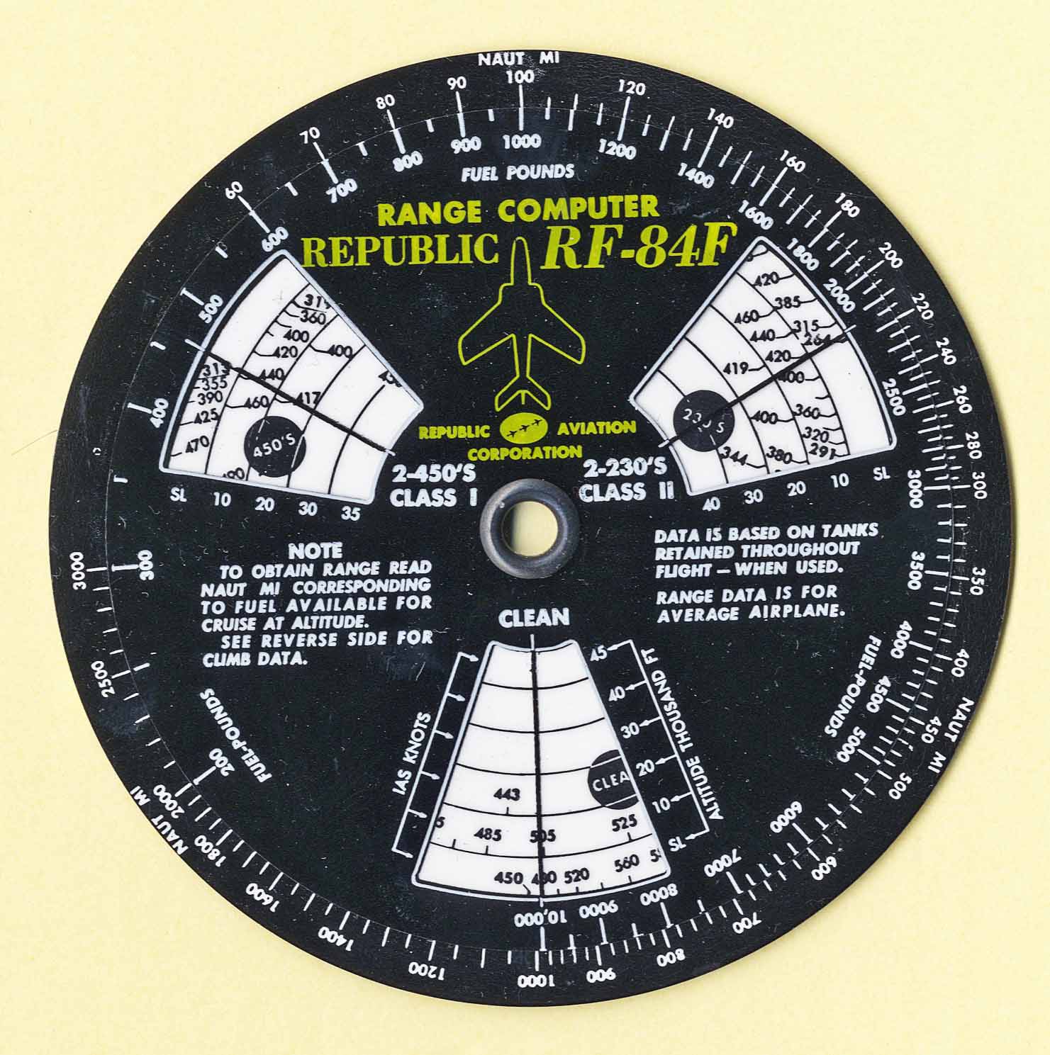| Disk | Republic Aviation / Thunderstreak (Photo Reconnaissance Version) | Republic Aviation | Plastic | est. 1950's | Dia. = 11.5 cm | Range computations |