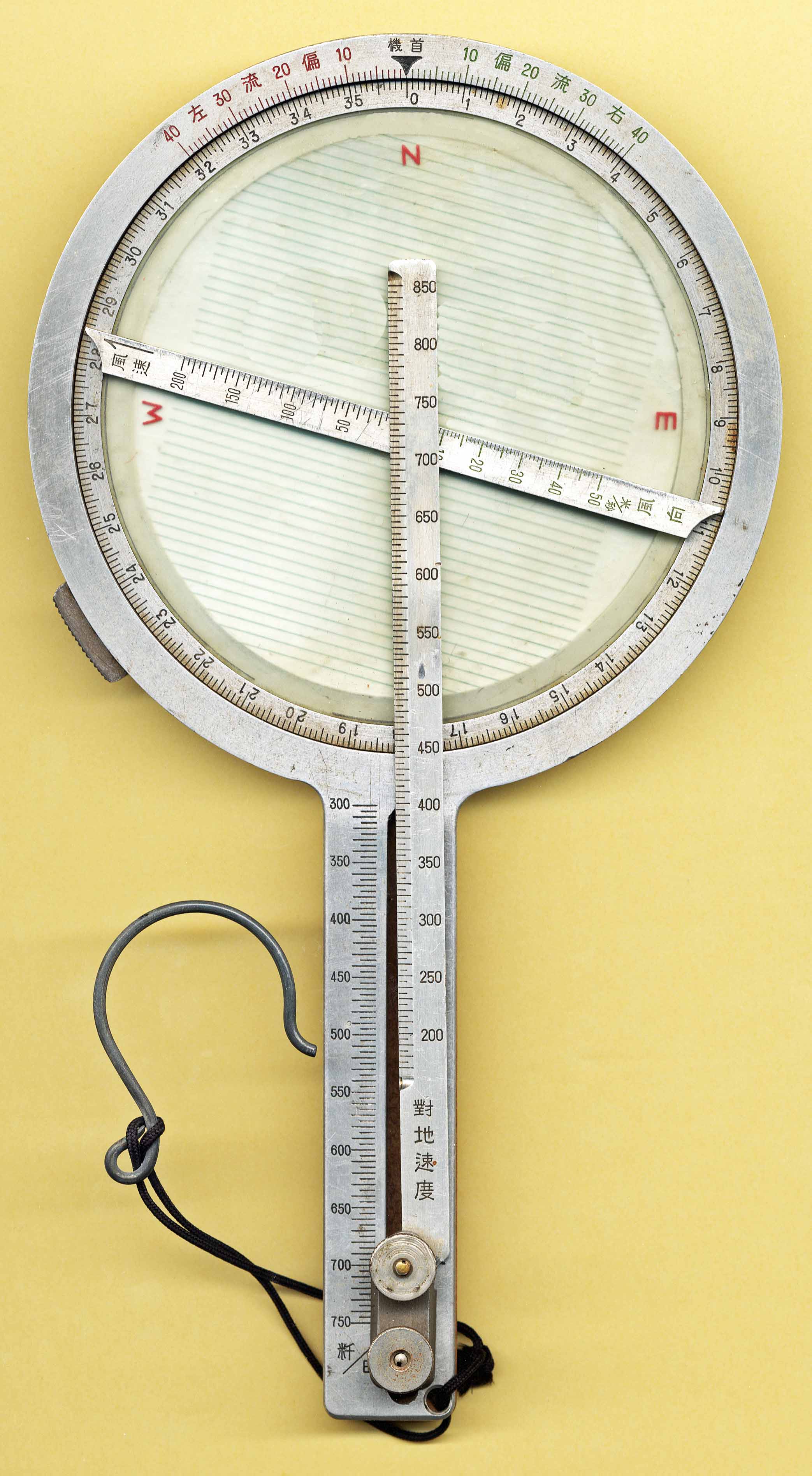 | Disk/Handle | Generic Instrument | Unknown Janapese Manfuacturer | Metal/Glass/Wood | est. 1941 | Dia. = 16.6 cm Handle = 13.5 cm | Flight Management |