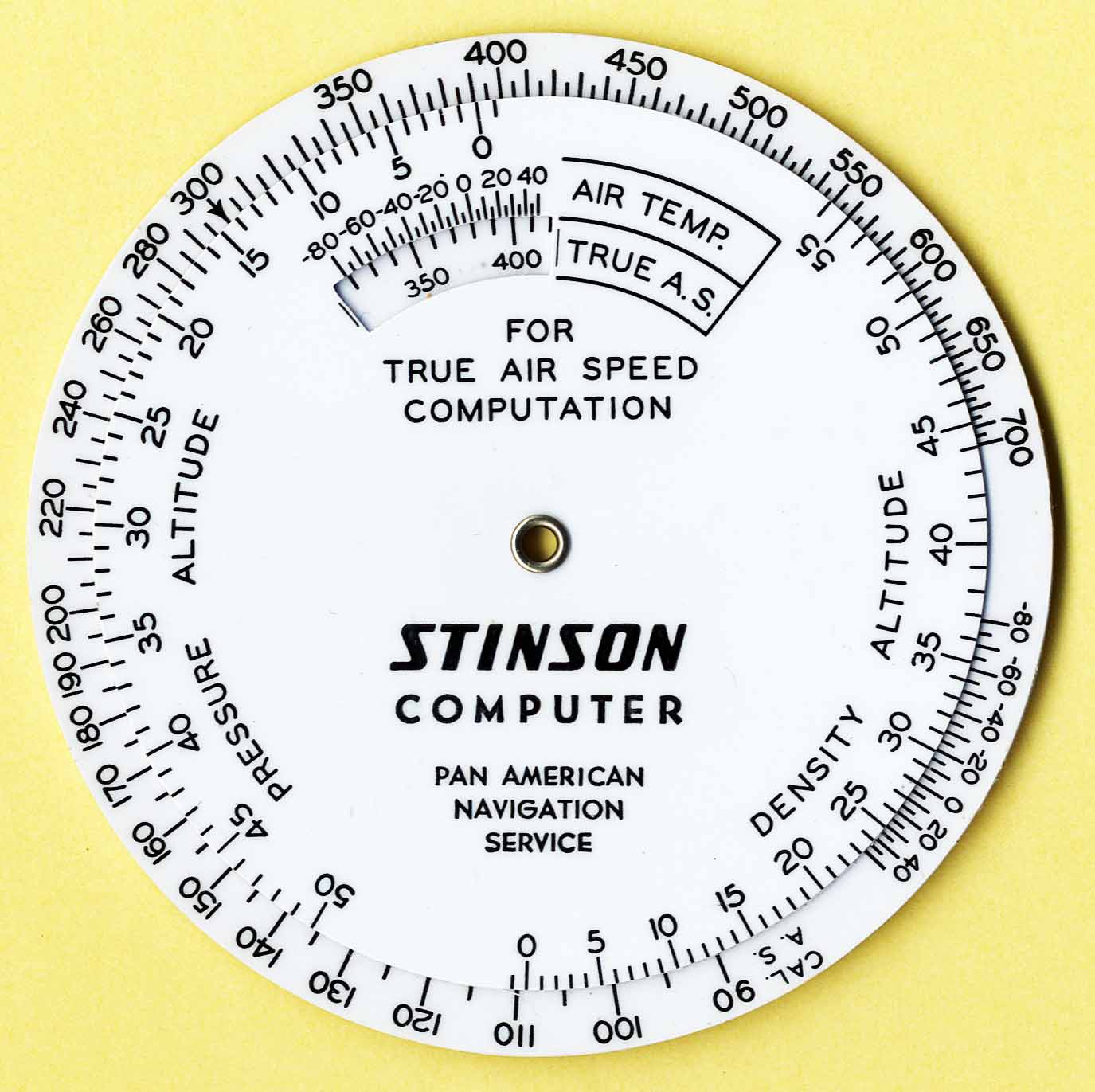 | Disk | Generic Instrument | Stinson Computer / Pan American Navigation Service | Plastic | est. late 1940's | Dia. = 10.9 cm | Flight Management |