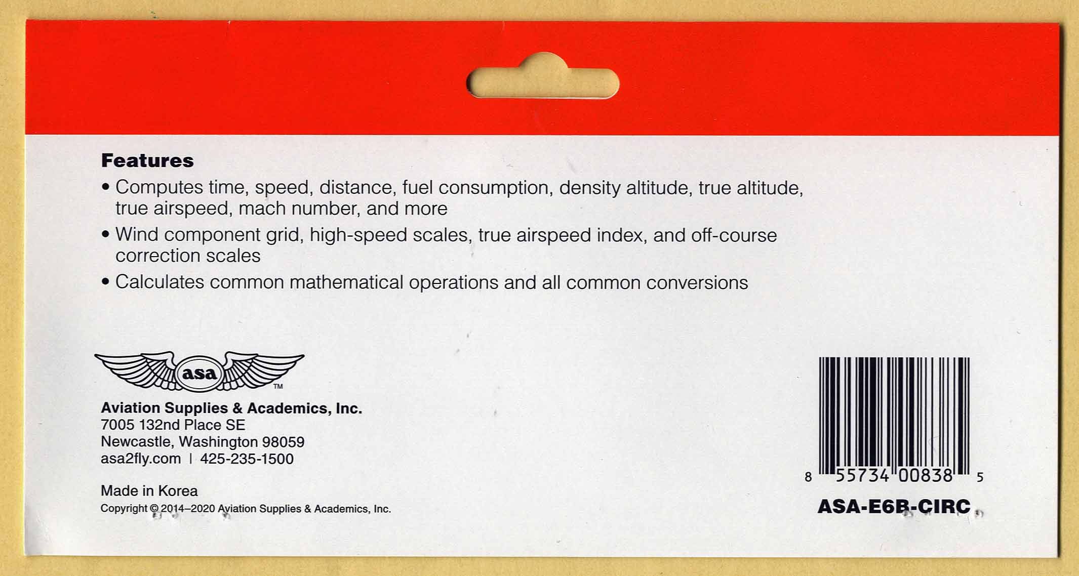 | Disk / Plate | Generic Instrument | "ASA (Aviation Supplies & Academics, Inc)" | Plastic | c. 2014-2020 | Dia. = 15.2 cm | Flight Management |