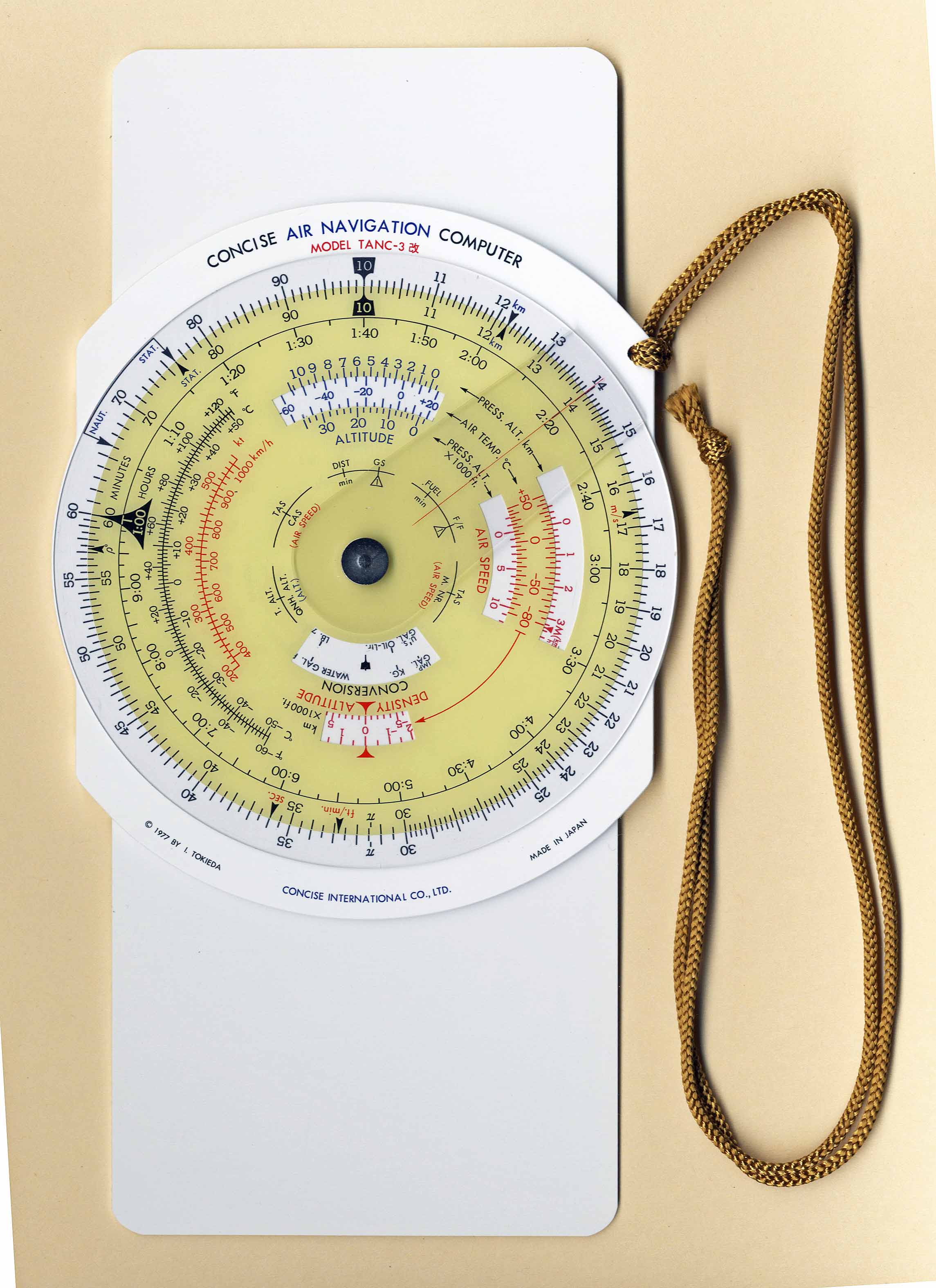 | Disk / Plate | Generic Instrument | "Concise Instrument Co., LTD." | Plastic | c. 1976 avail. 2021 | Dia = 12.6 cm /9.9 cm x 25 cm | Flight Management |