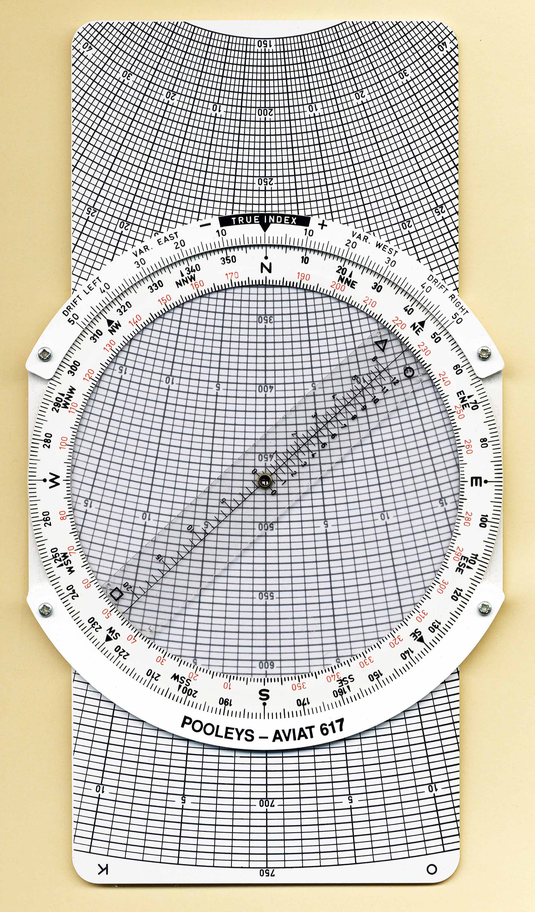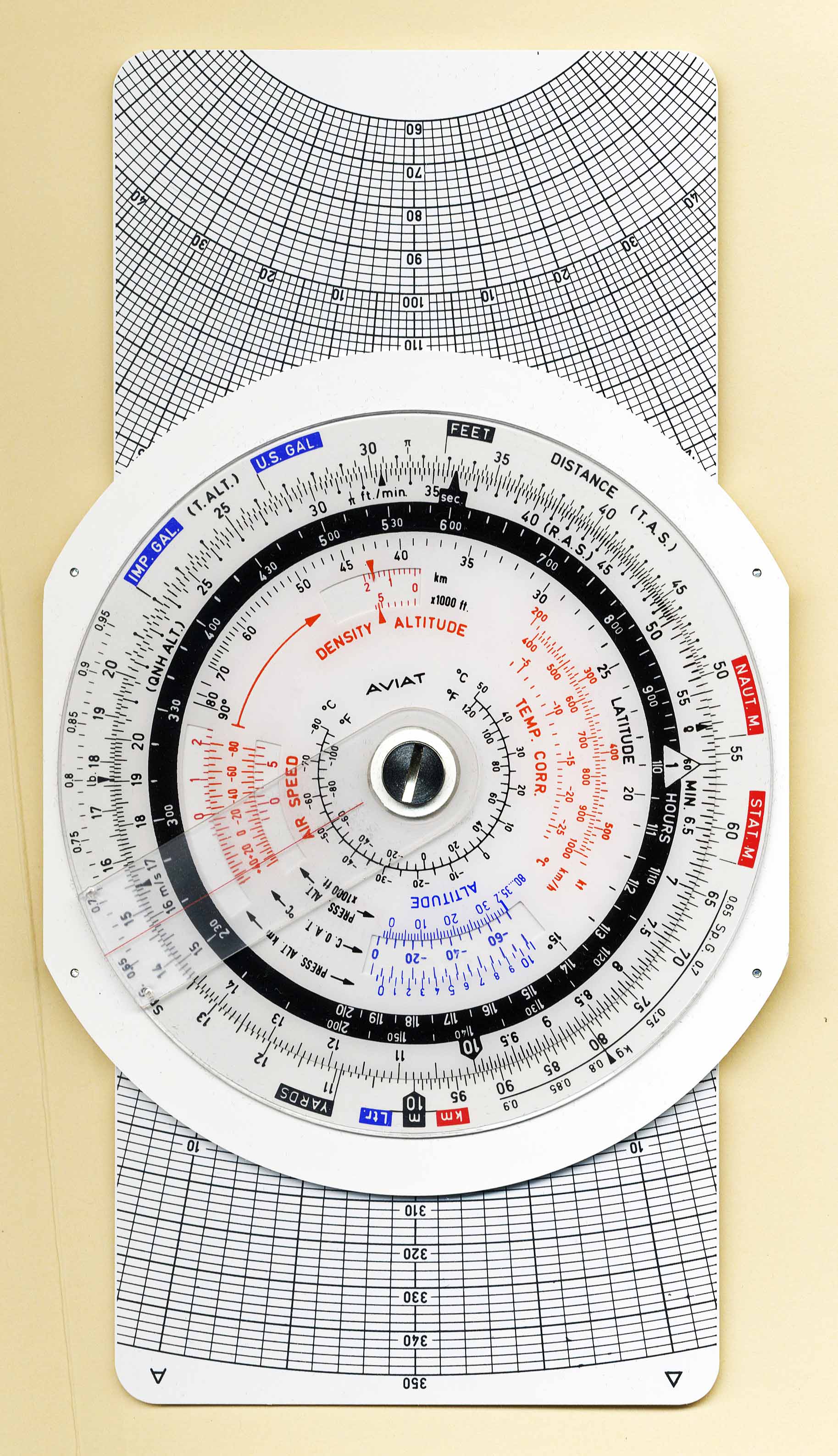 | Disk / Plate | Generic Instrument | Made by Aristo for Pooley Flight Equipment Company | Plastic | 1988 | Dia = 13.4 cm / 11.4 cm x 25 cm | Flight Management |