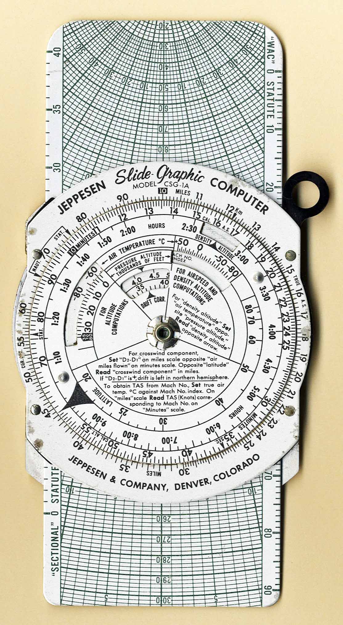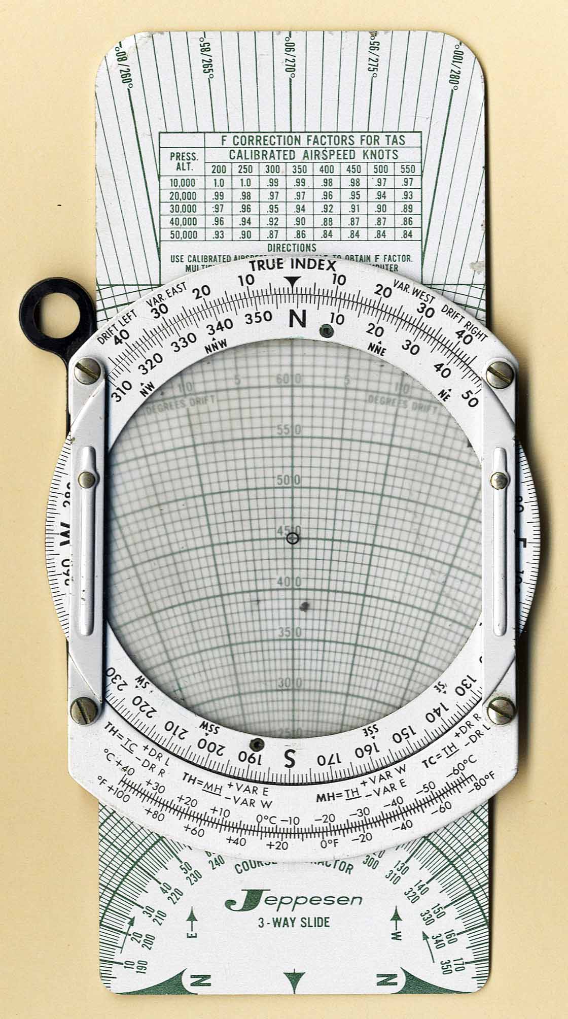 | Disk / Plate | Generic Instrument | Jeppesen & Company | Metal / Plastic | 1960's to 1970's | Dia. = 8.2 cm / 6.5 x 16.4 cm | Flight Management |