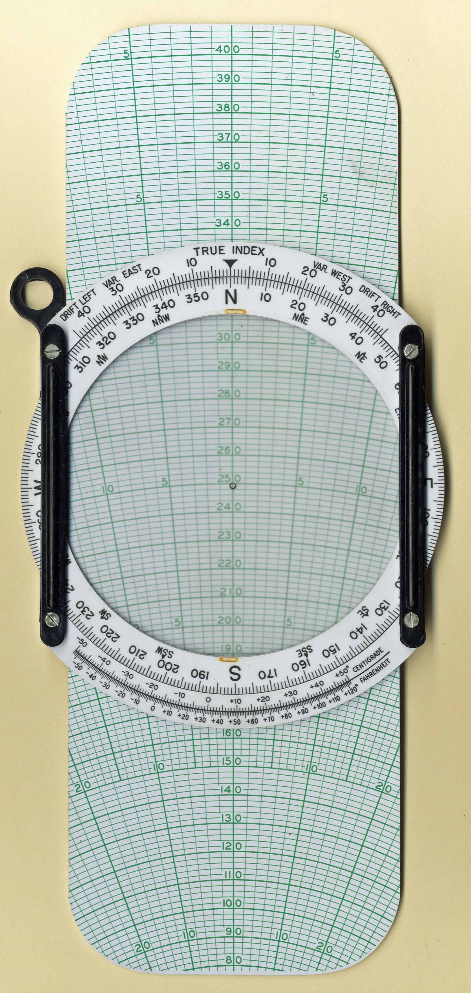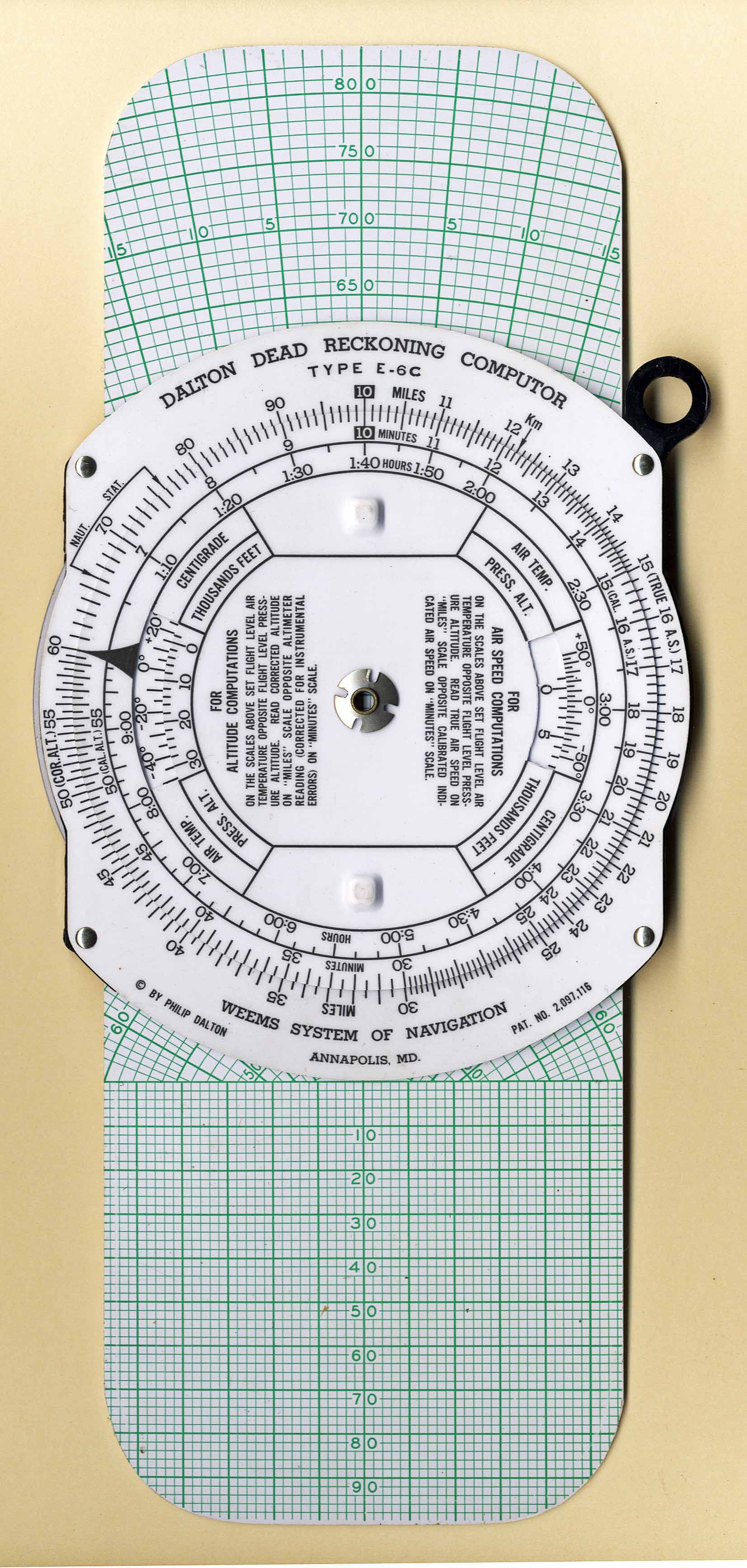 | Disk / Plate | Generic Instrument | Weems System of Navigation | Plastic | est. 1950's | Dia. = 12.3 cm / 9.7 cm x 28.3 cm | Flight Management |