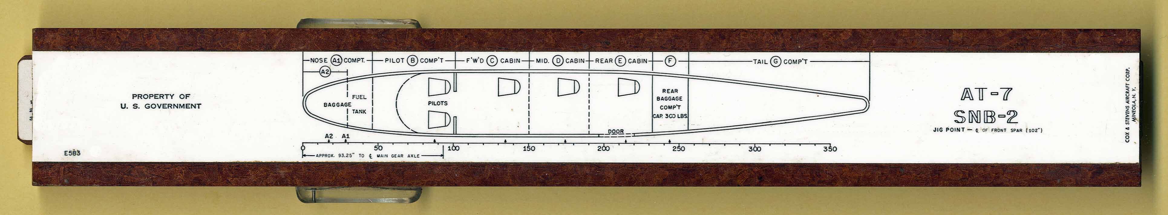 | Linear | Beechcraft / Navigator Model 18 version | Cox and Stevens Aircraft Corp. | Plastic on Wood | 1937 | 4.5 cm x 31 cm | Weight & Balance |