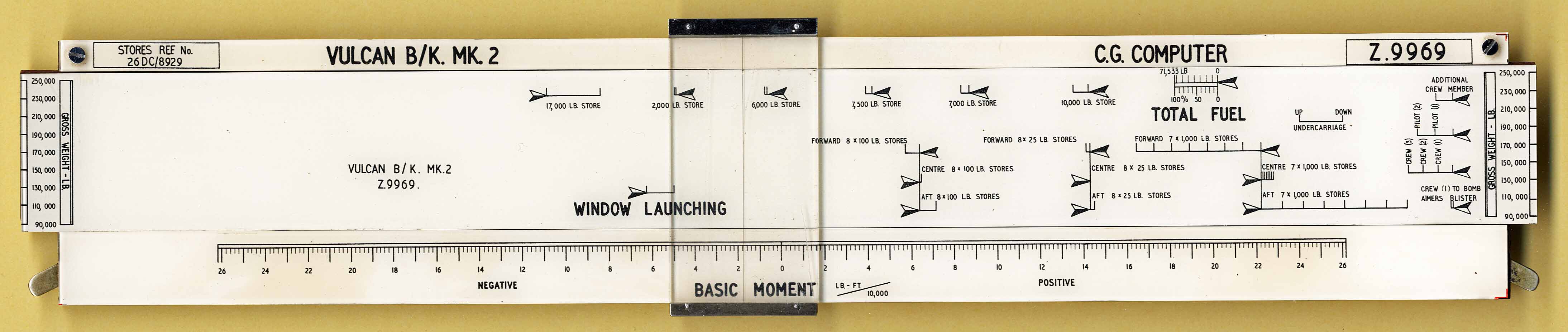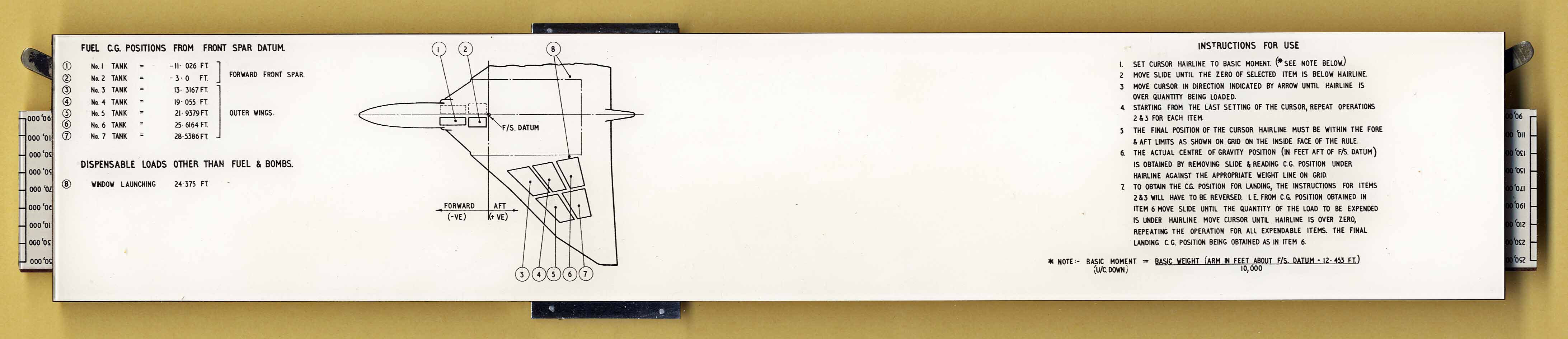 | Linear | B/K. MK. 2 | Avro / Vulcan | Avro? | England | Plastic on Wood | 1960 | 6.4 cm x 34.2 cm | Weight & Balance |