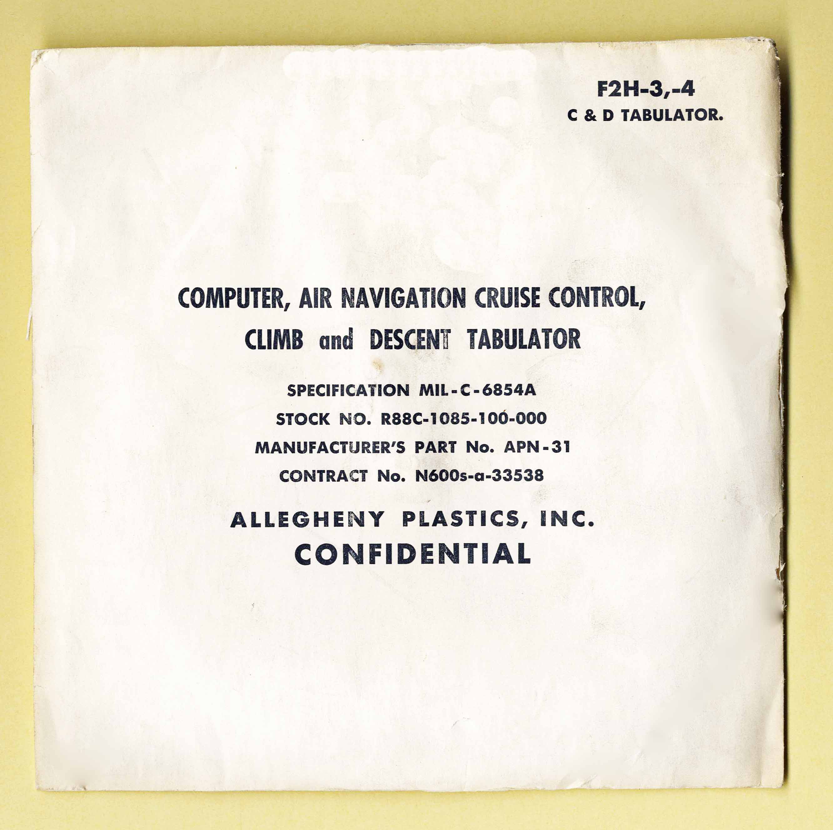 | Disk | McDonnell Douglas Banshee | Allegheny Plastics for McDonnell Douglas | Plastic | 1954 | Dia = 17.7 cm | AircraftOperation computer |