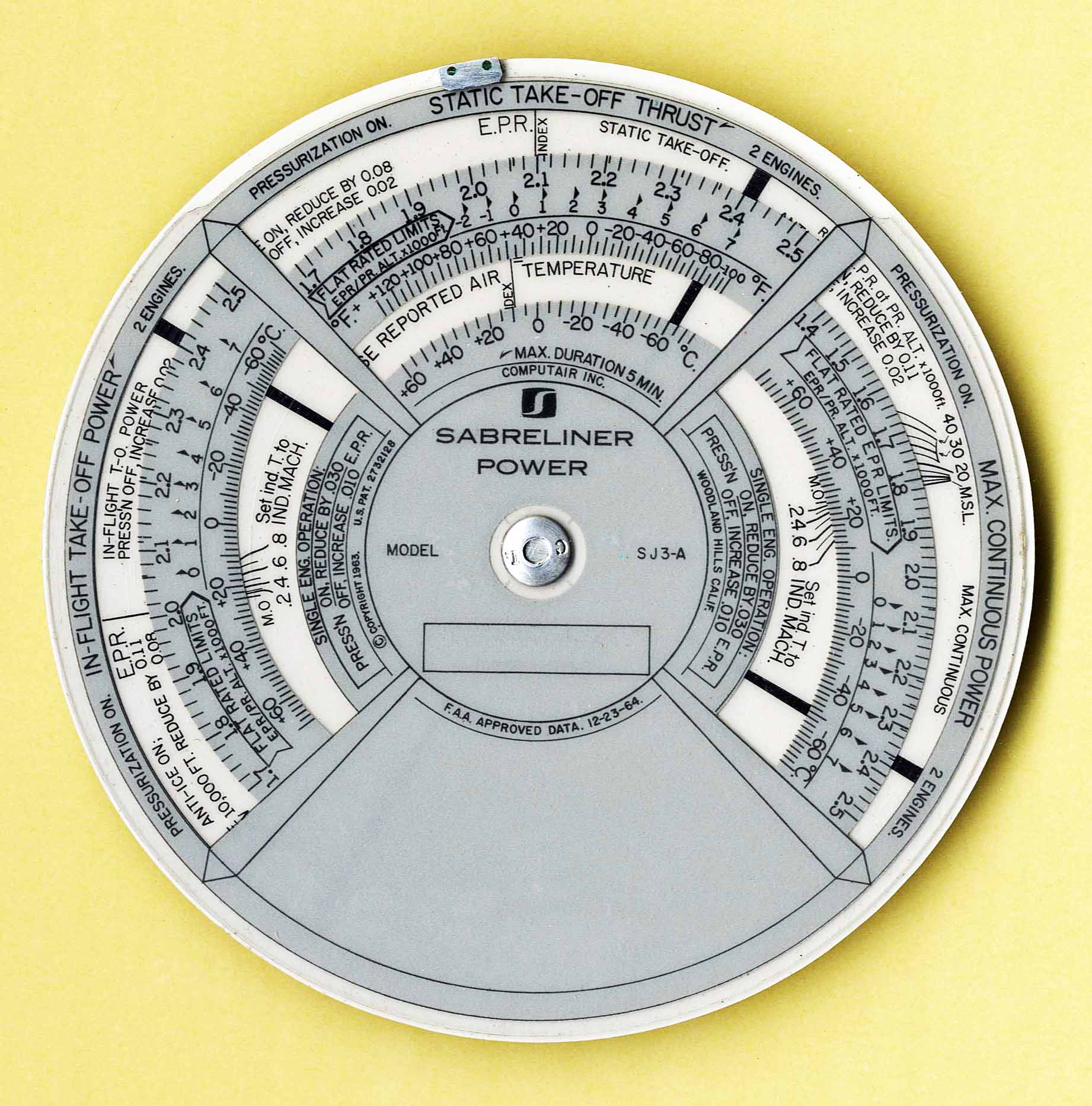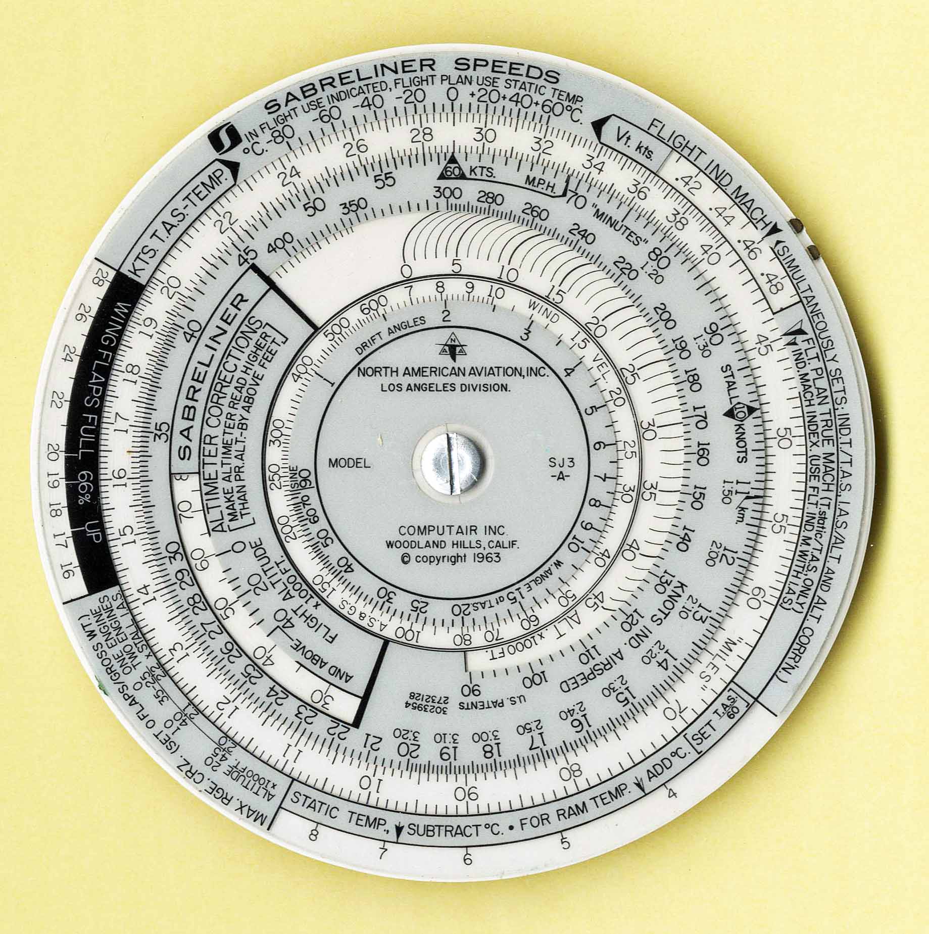 | Disk | North American Aviation Saberliner | Computair Inc. for North American Aviation Co. | Plastic | c. 1963 | Dia. = 14 cm | Flight Management |