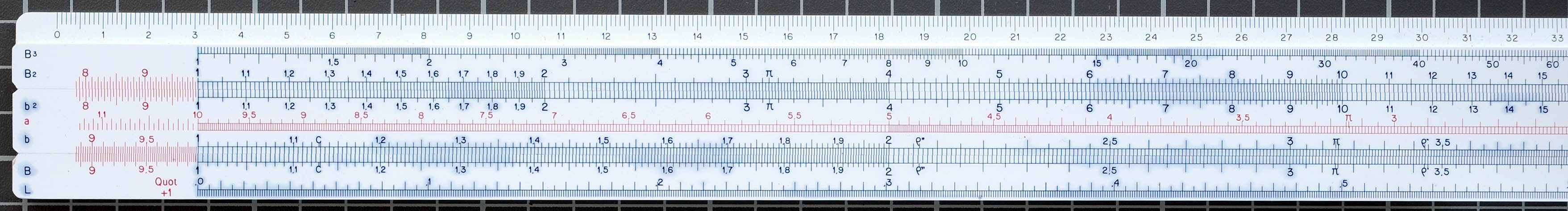Notes: "This is a very attractive but very simple slide rule—only ten scales. If you wanted a beginners long-scale slide rule, this would be it."