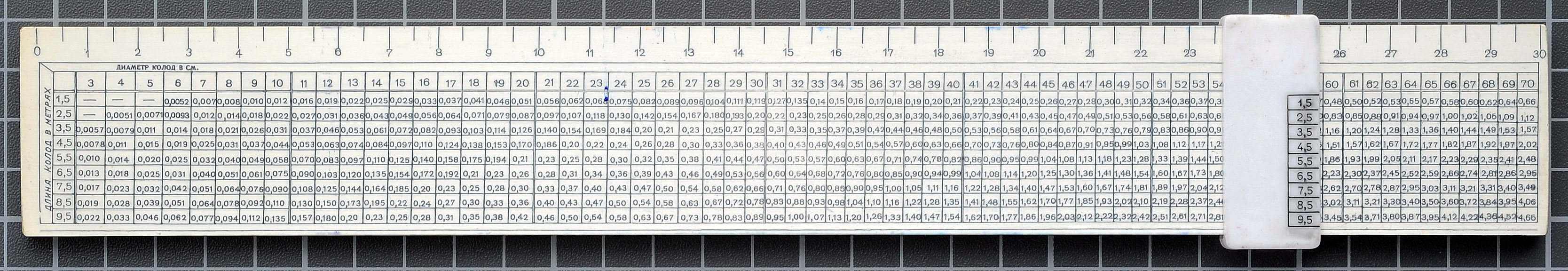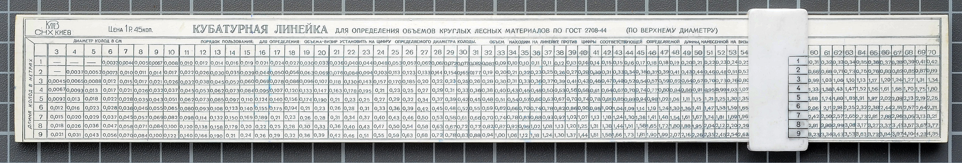 Notes: A Russian-literate colleague tells me this rule seems to calculate the volume of lumber in a log.