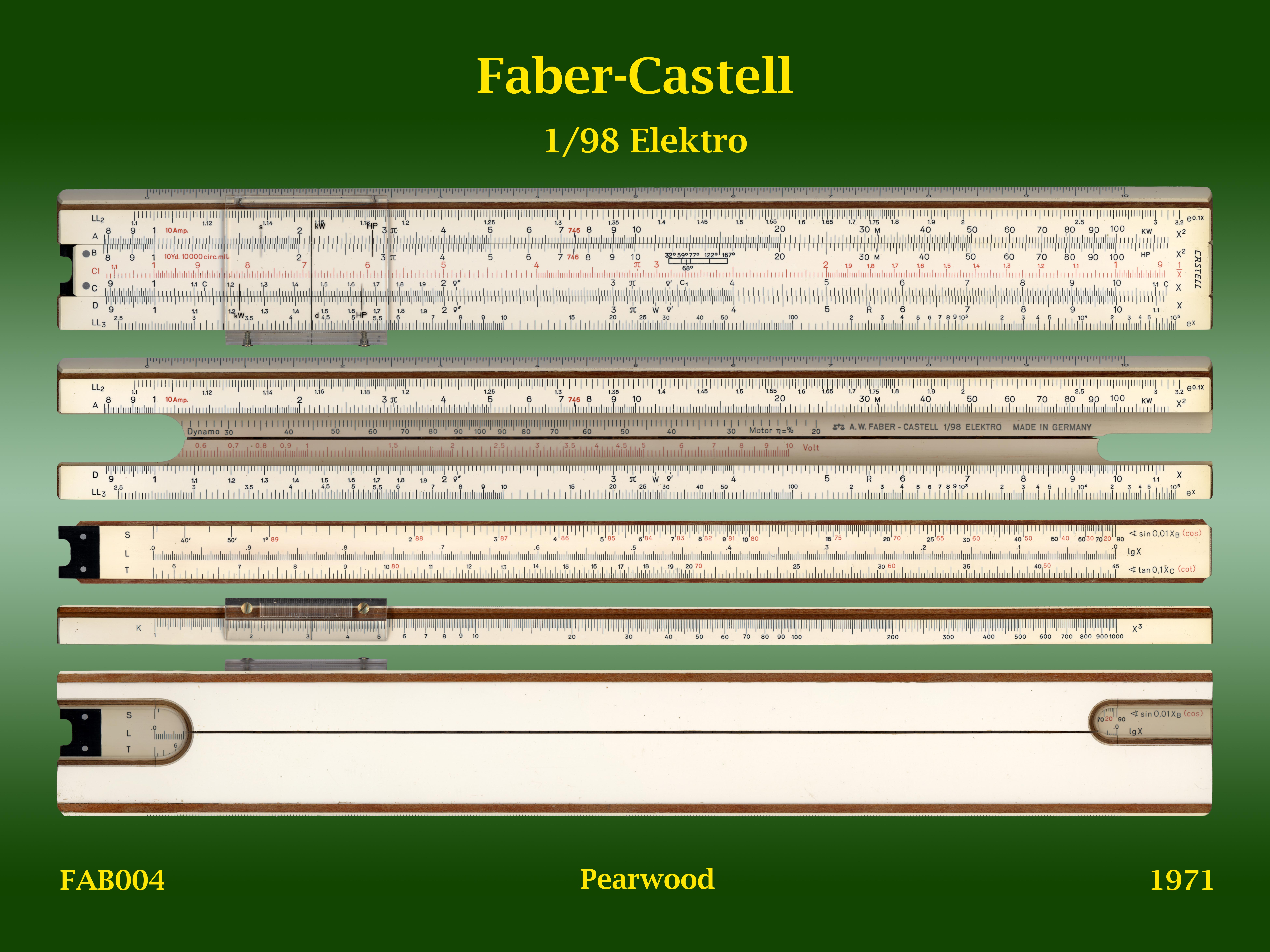 | FAB004 | Linear | 1/98 | Elektro | Faber-Castell | Germany | Pearwood | 25 cm | 1971 | C2 |
