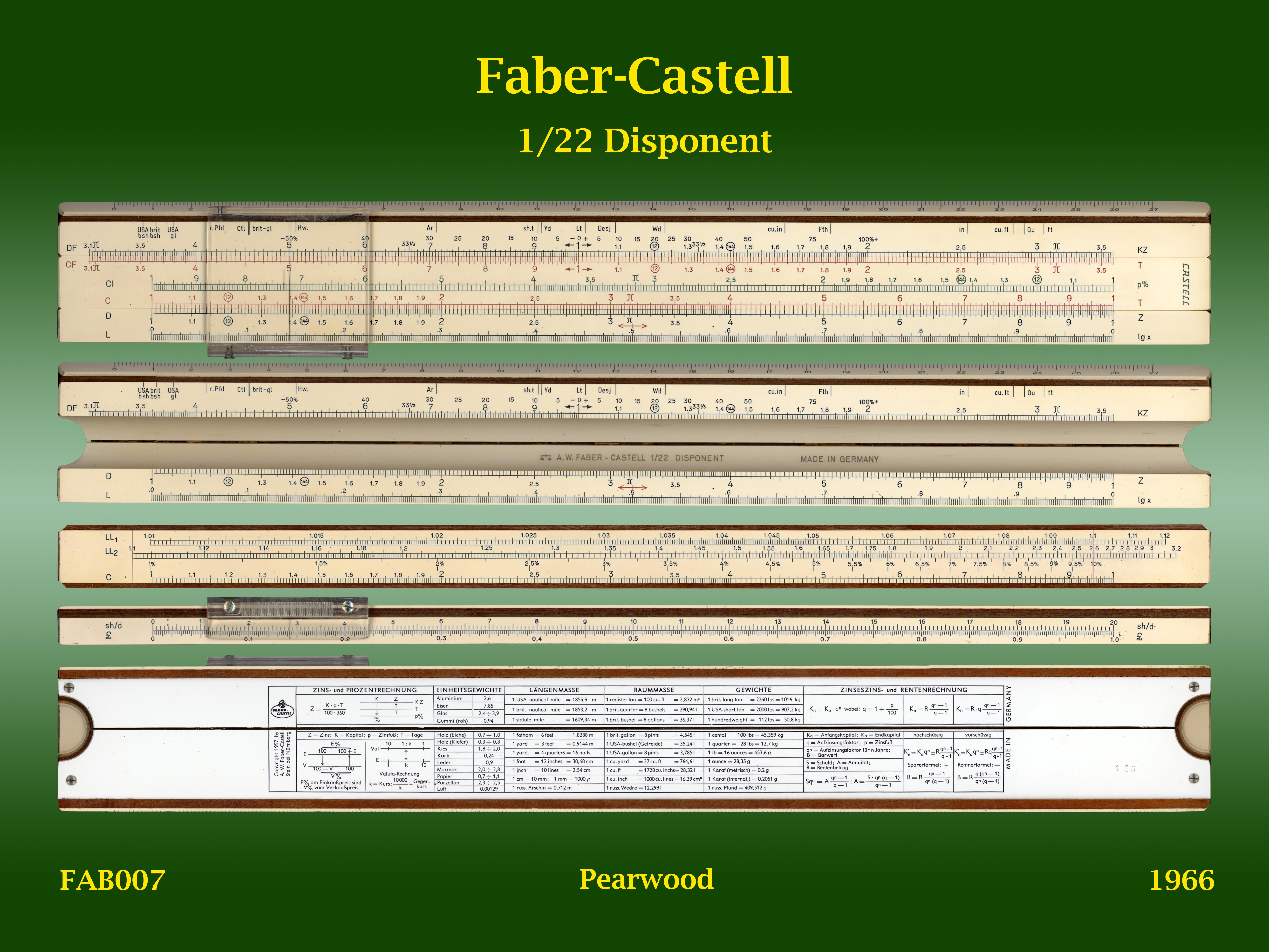 | FAB007 | Linear | 1/22 | Disponent | Faber-Castell | Germany | Pearwood | 25 cm | 1966 | C3 |