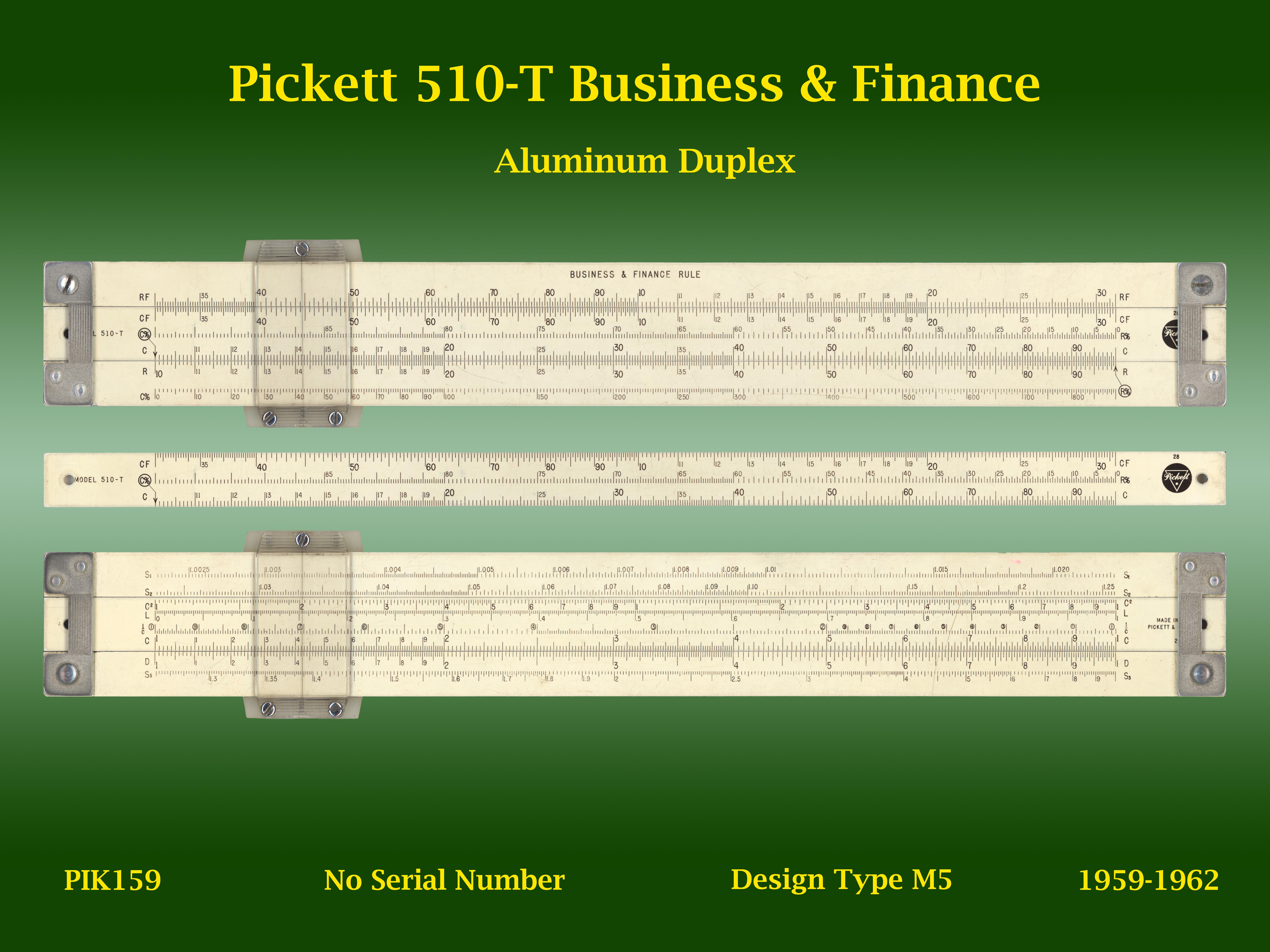 | PIK159 | Linear | 510-T | Business & Finance | | M5 | Pickett | USA | | Aluminum | "10" | 1959-1962 | C5 |