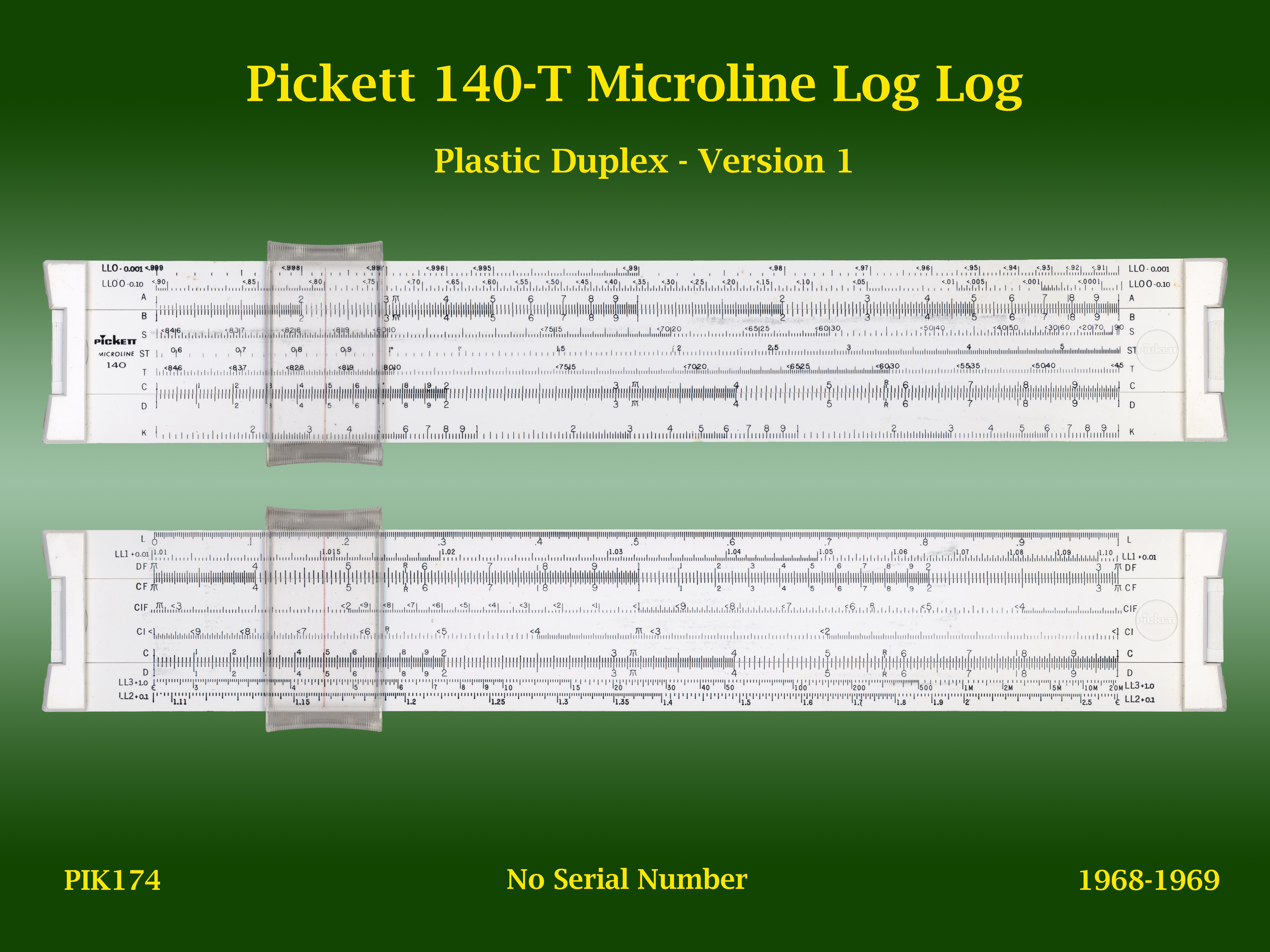 | PIK174 | Linear | 140-T | Microline Log Log | 1 | n/a | Pickett | USA | | Plastic | "10" | 1968-1969 | C4 |