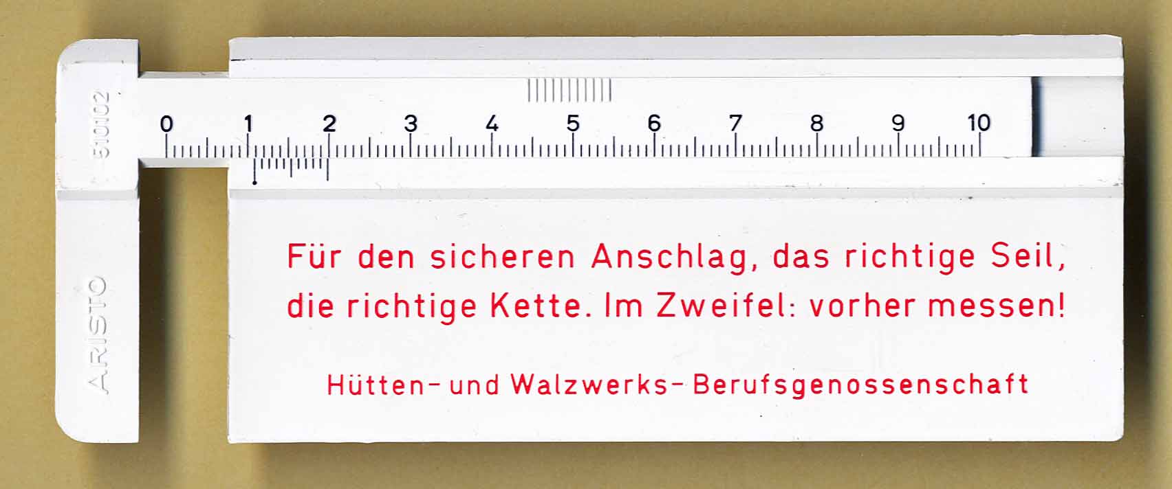 "Caliper for measuring wire rope sizes, shows wide range of Aristo plastic products"