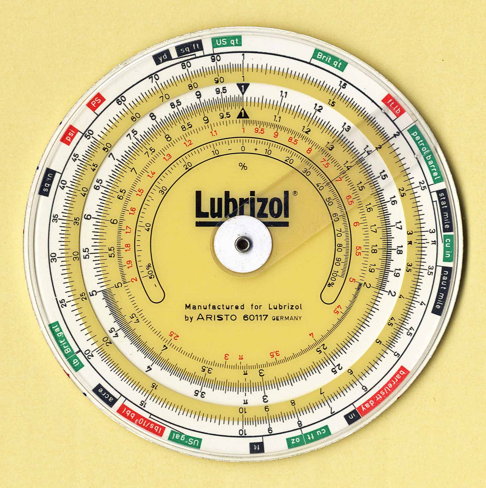 "Made for Lubrizol, for automotice calculations - possibly an advertising gift"