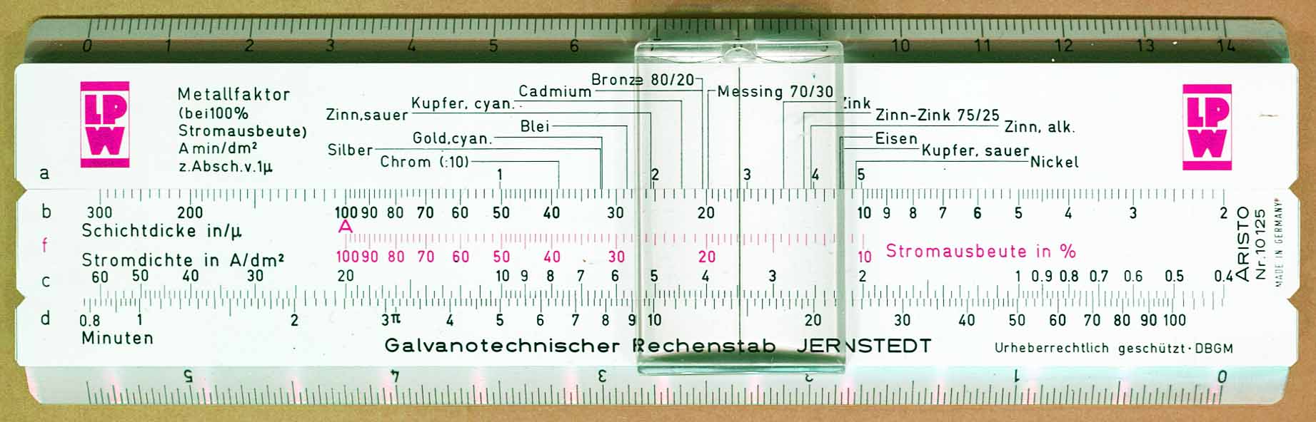 | Linear | 10125 | Aristo | Germany | Plastic | 1955 | 15.5 cm | Electroplating industry |