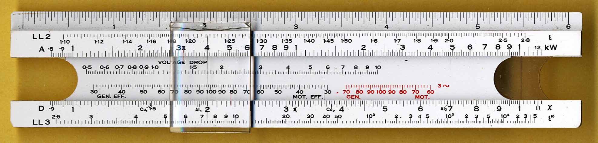 "A pocket ""Electro"" slide rule used for electrical calculations including horsepower, kilowatts, motor voltage drops etc."