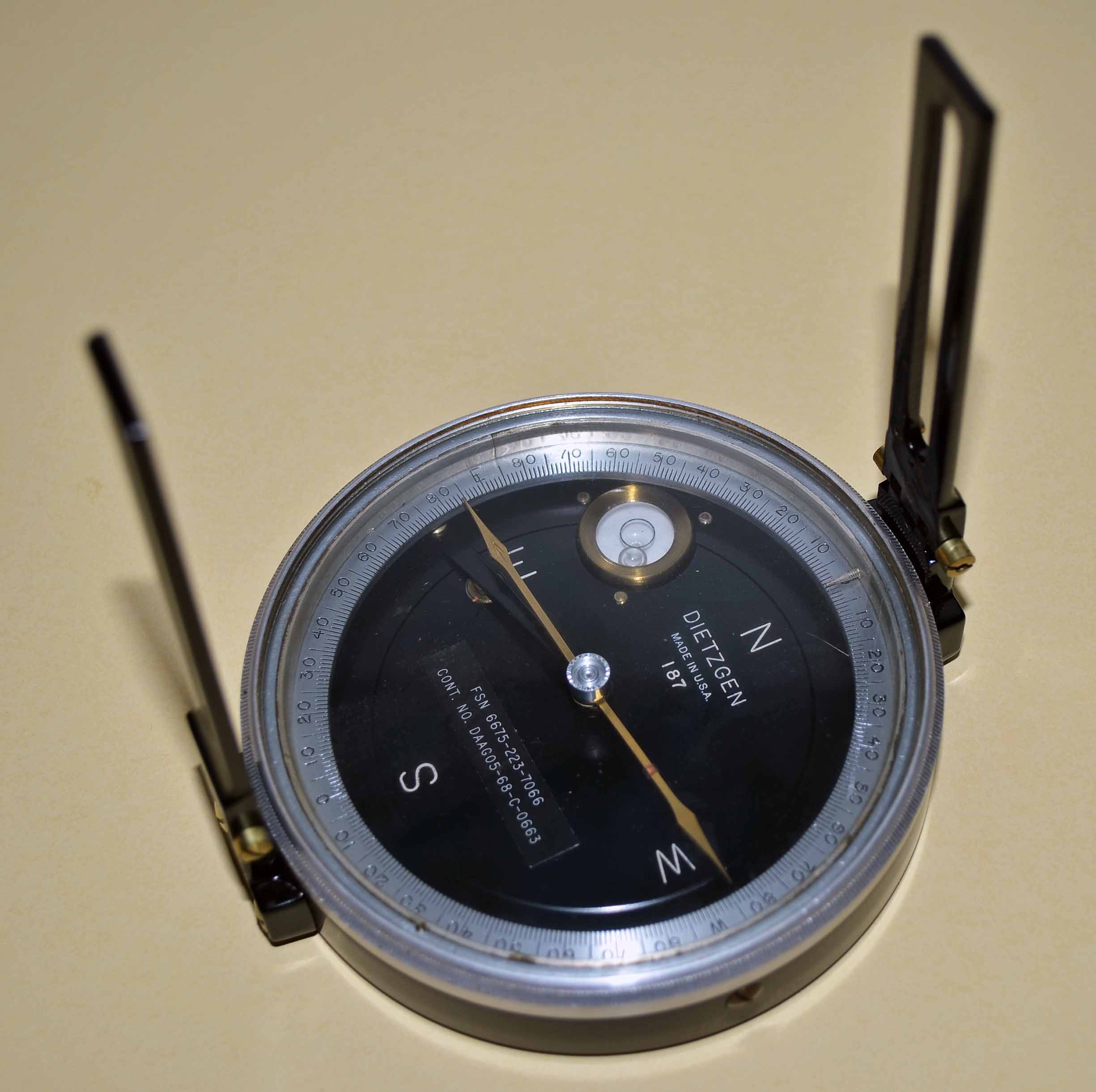 Notes: "Part #6689, The 1949 Dietzgen catalog describes it as a precision magnetic surveying and timber cruiser compass"