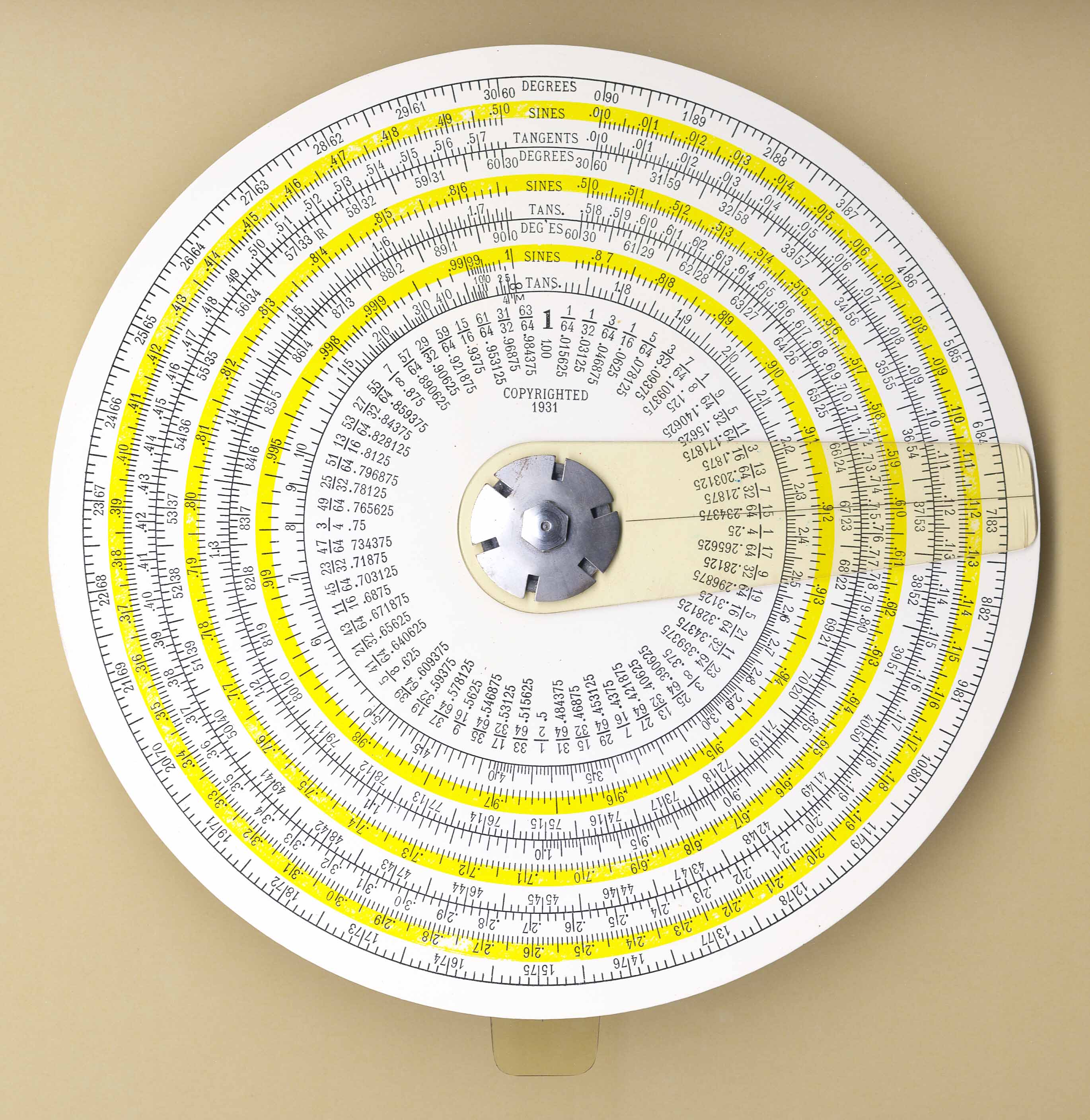 "Also called Atlas, Dia = 21.1 cm, trig scales on the reverse"