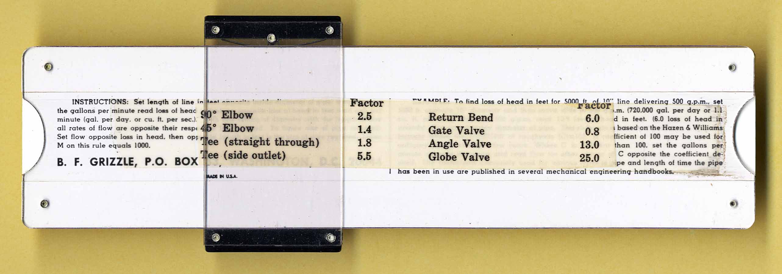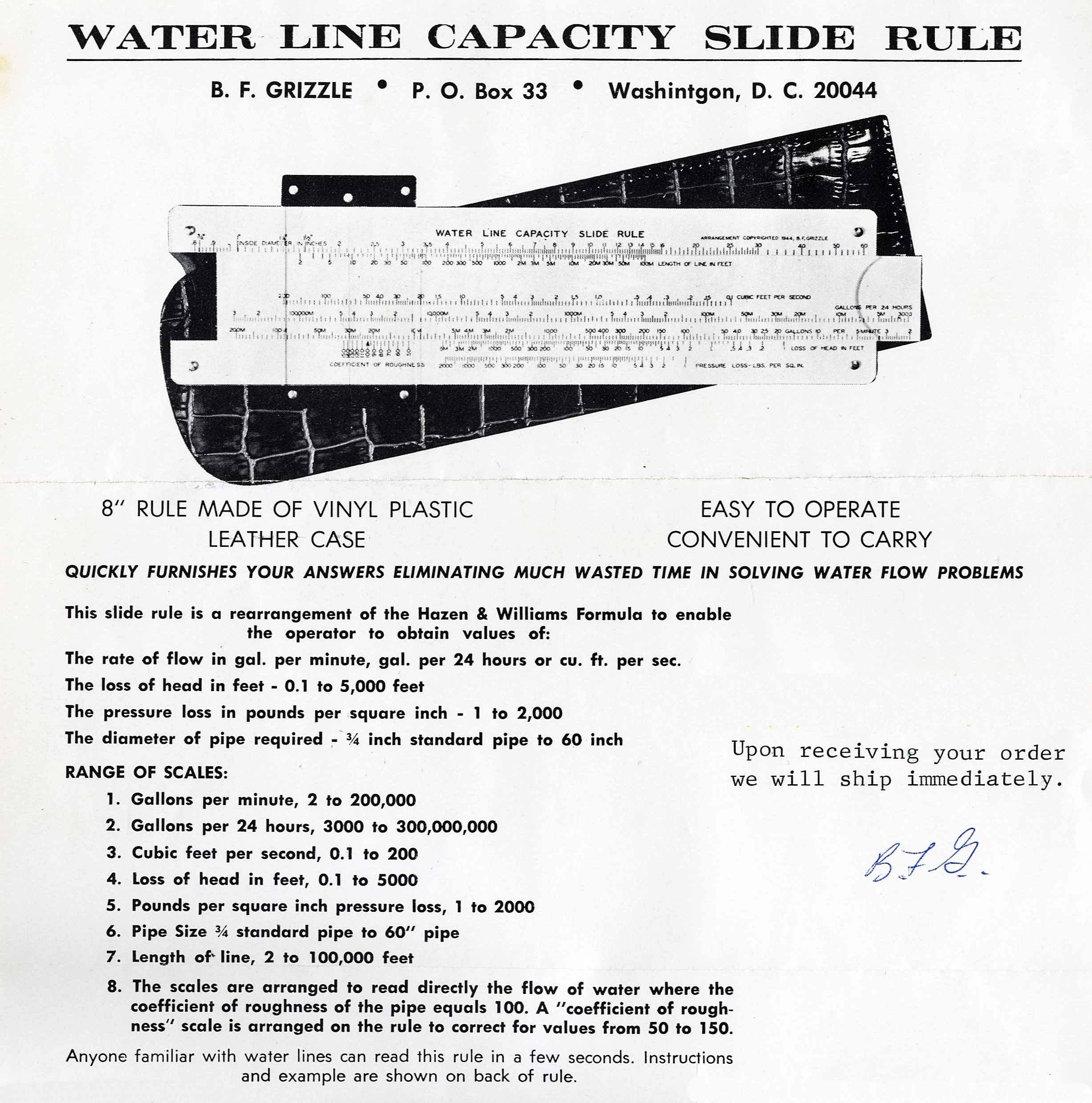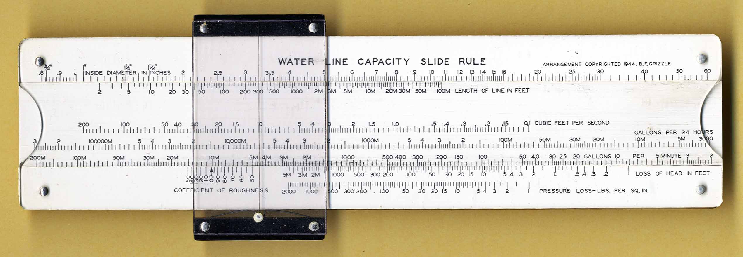 Grizzle Water Line Capacity Slide Rule