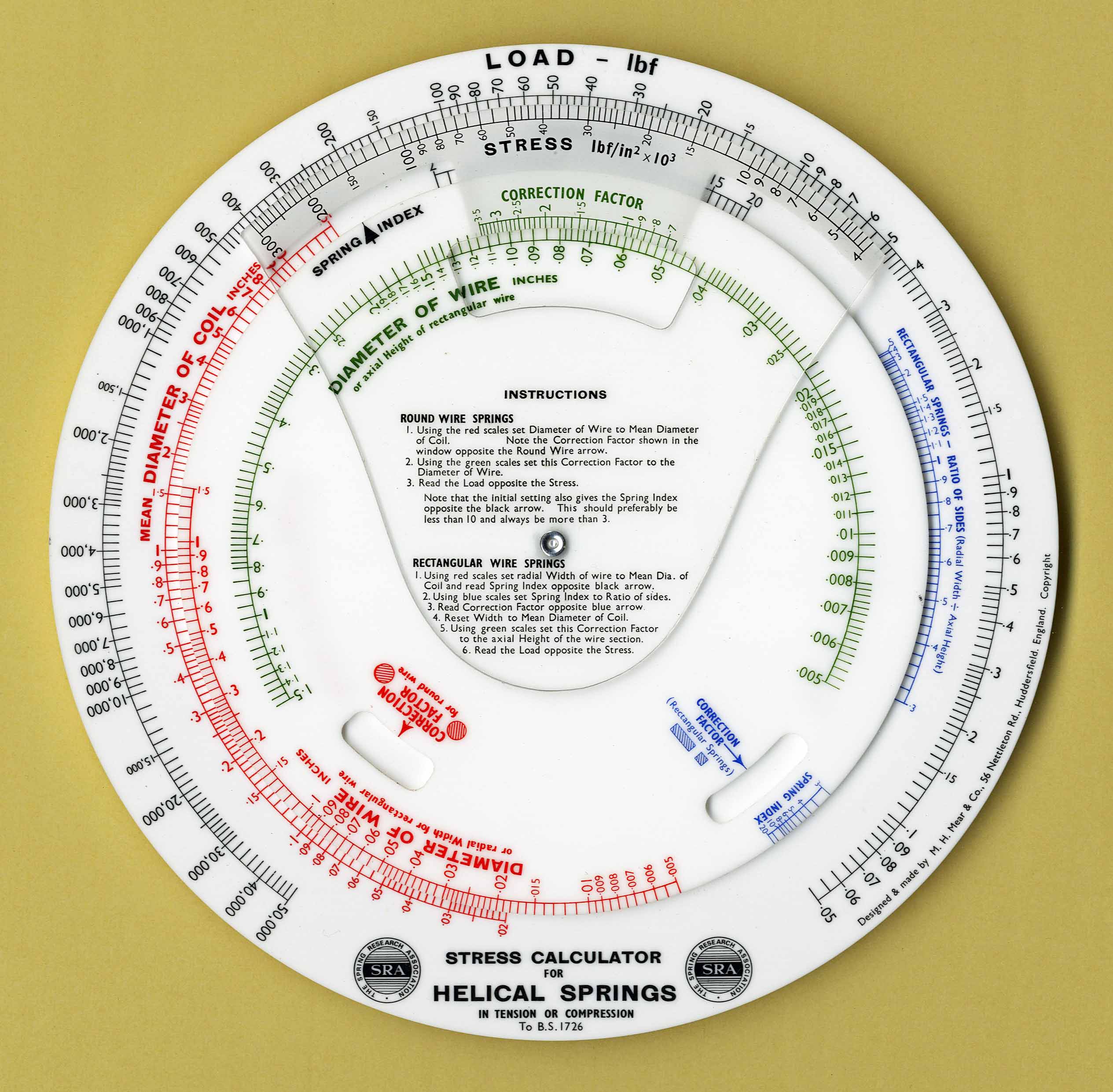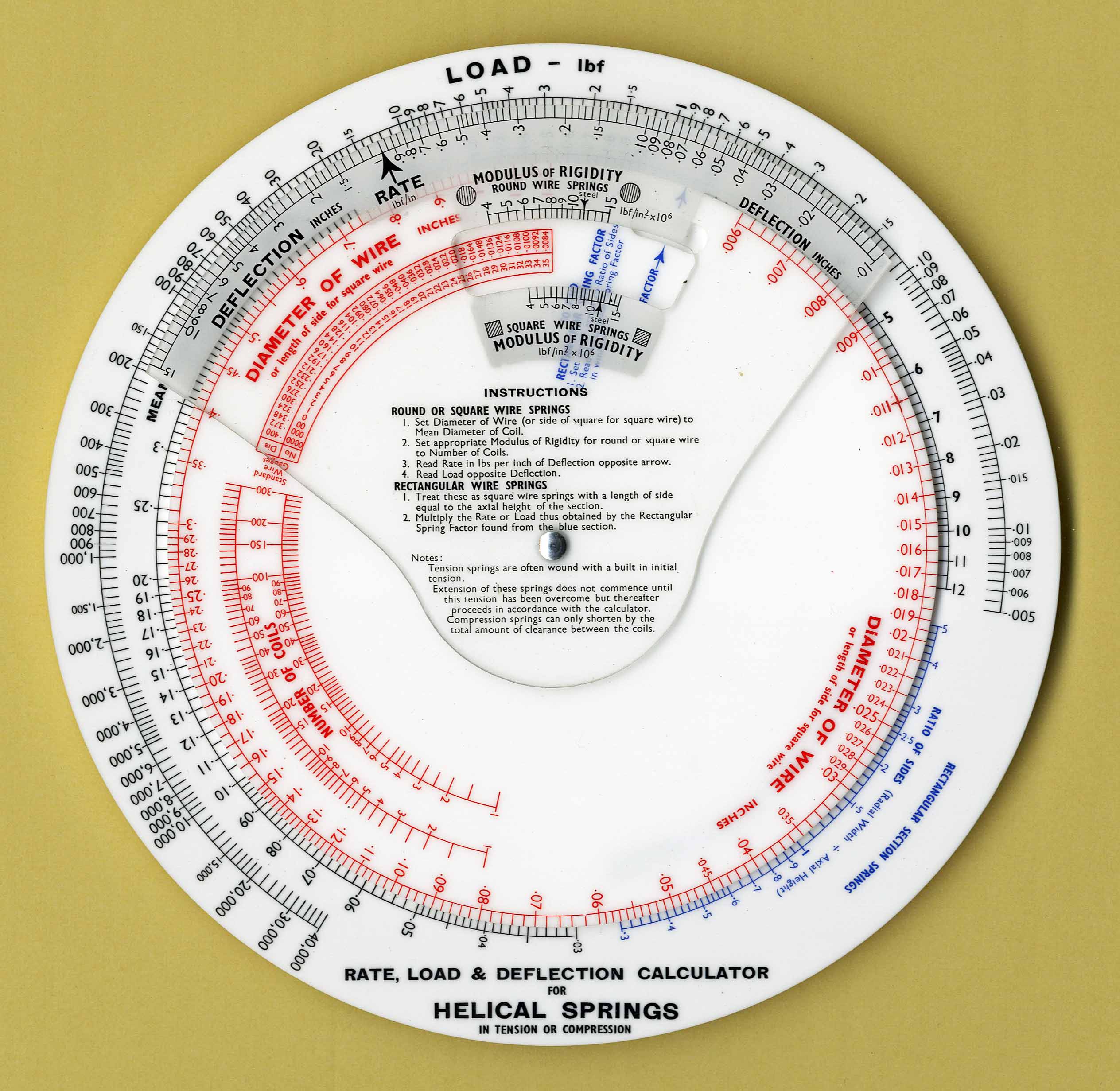 "Used to calculate rate, load & deflection side A and Stress in tension or compression on side B"
