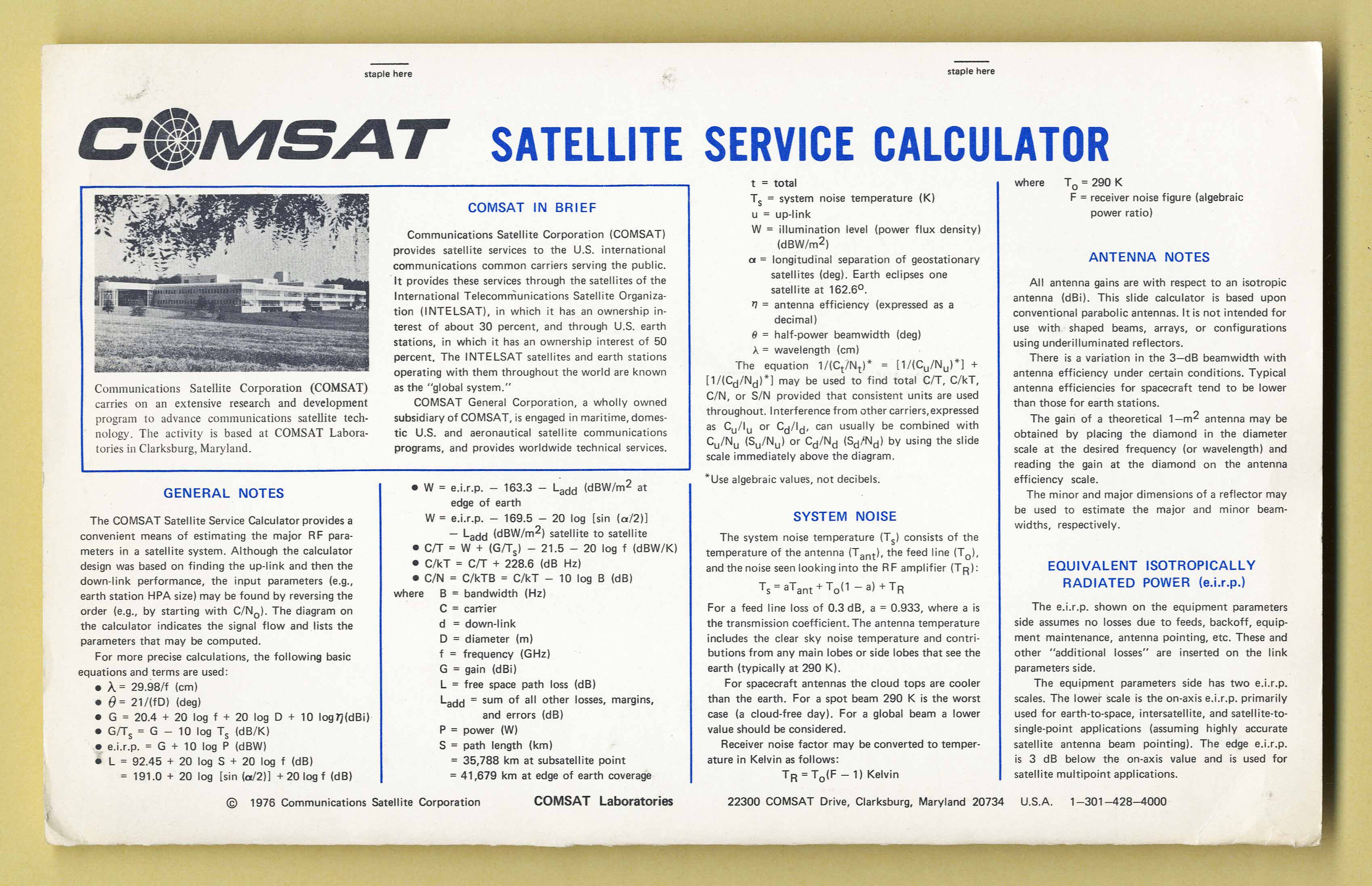 Comsat Satellite Service Calculator