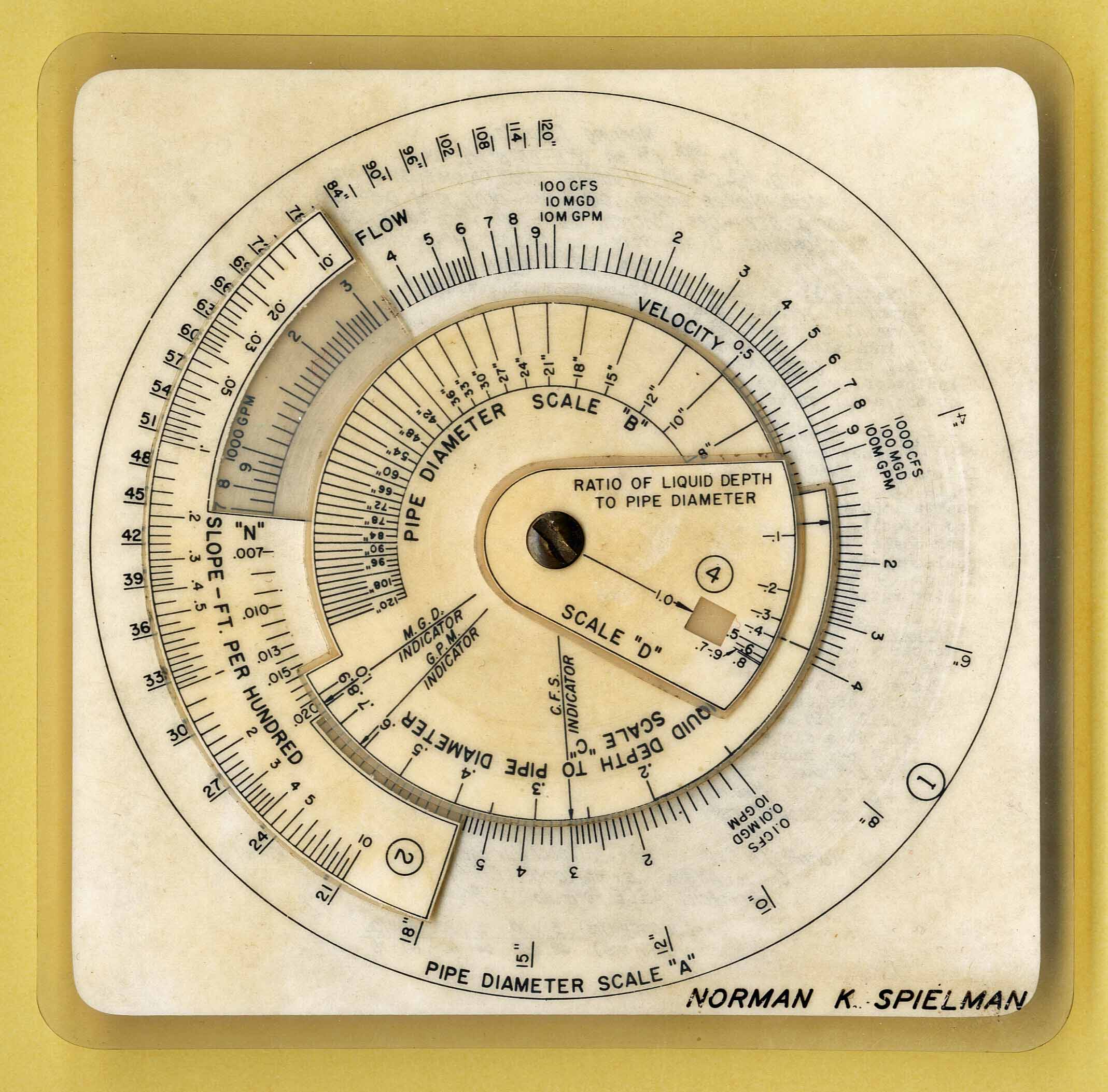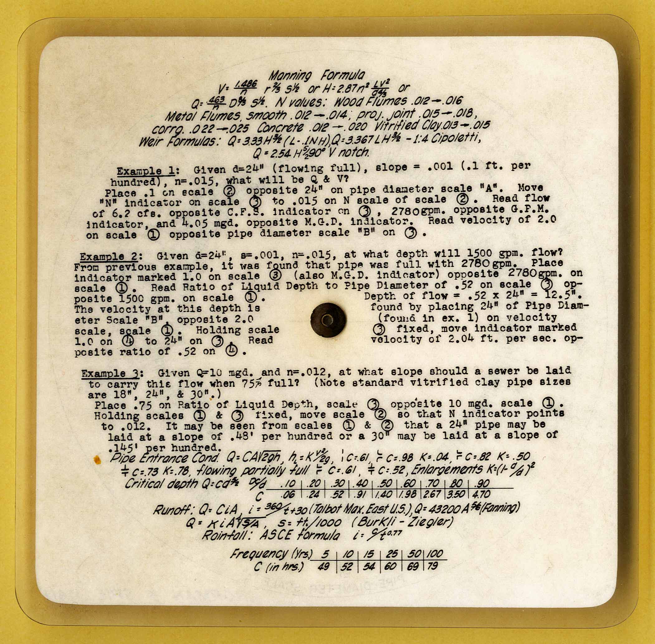 "Provides extensive moving scales for pipe diameter, flow rate, slope and other related calculations"