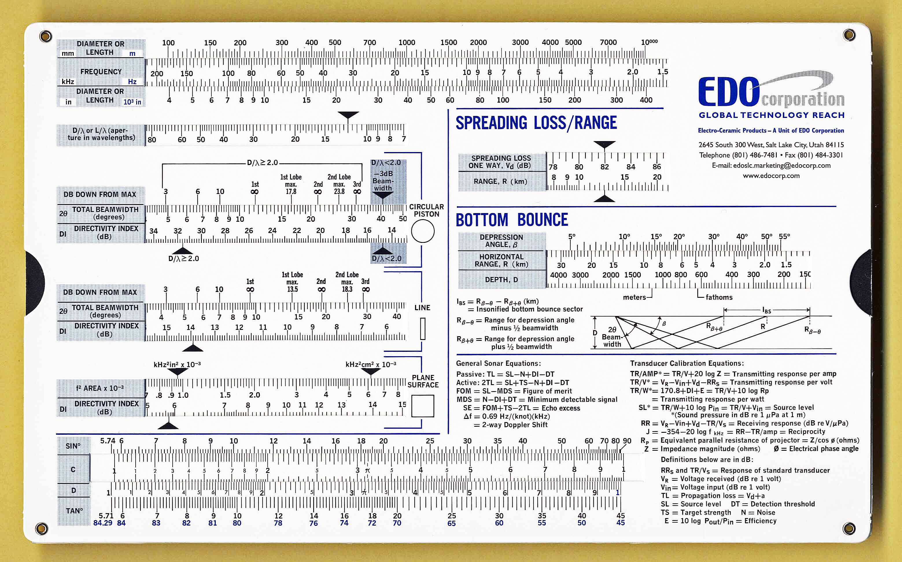 Sonar and transducer calculations for underwater operations