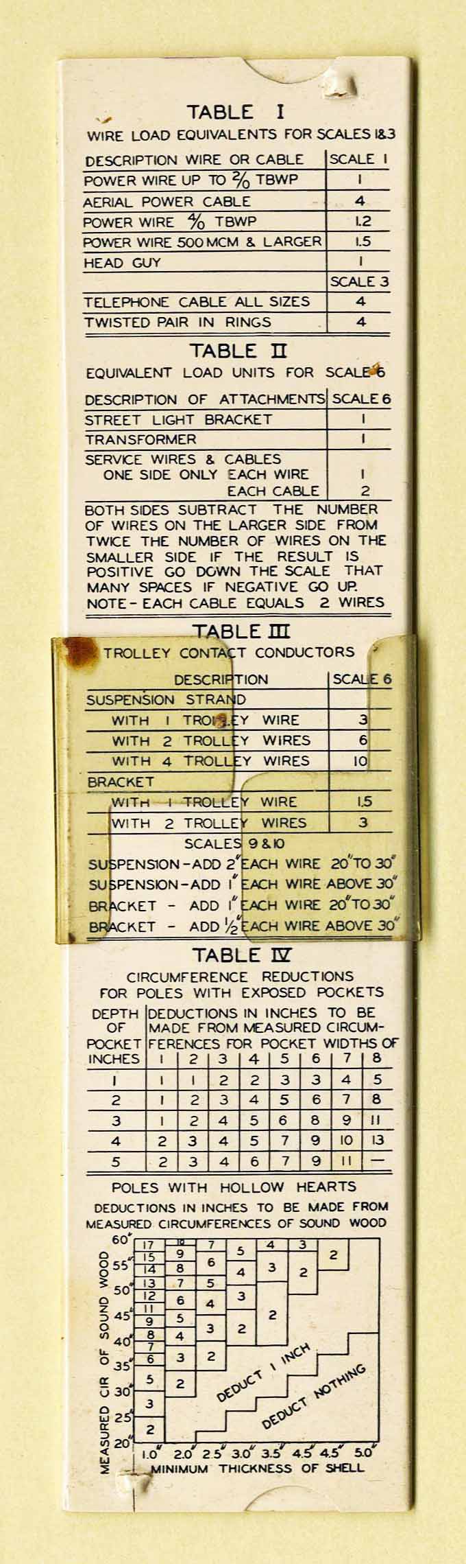 "Used to calculate power line requirements, wire size, span, deflection angle etc."