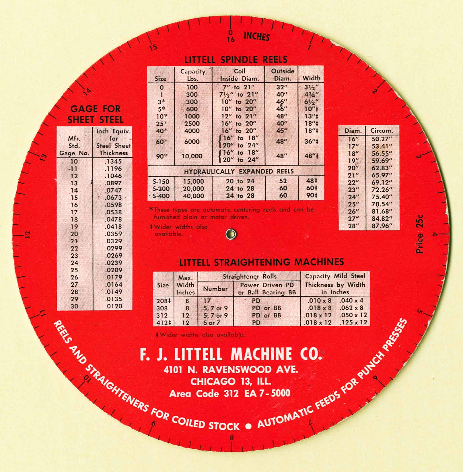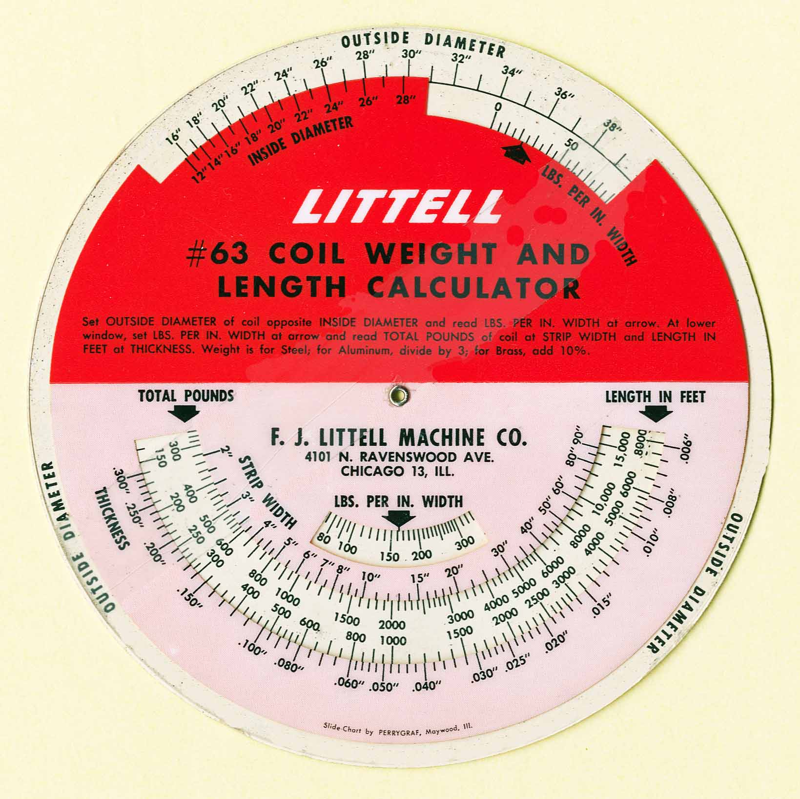 Used in the sheet steel industry to determine coil weights and lengths with various constant tables on the reverse side