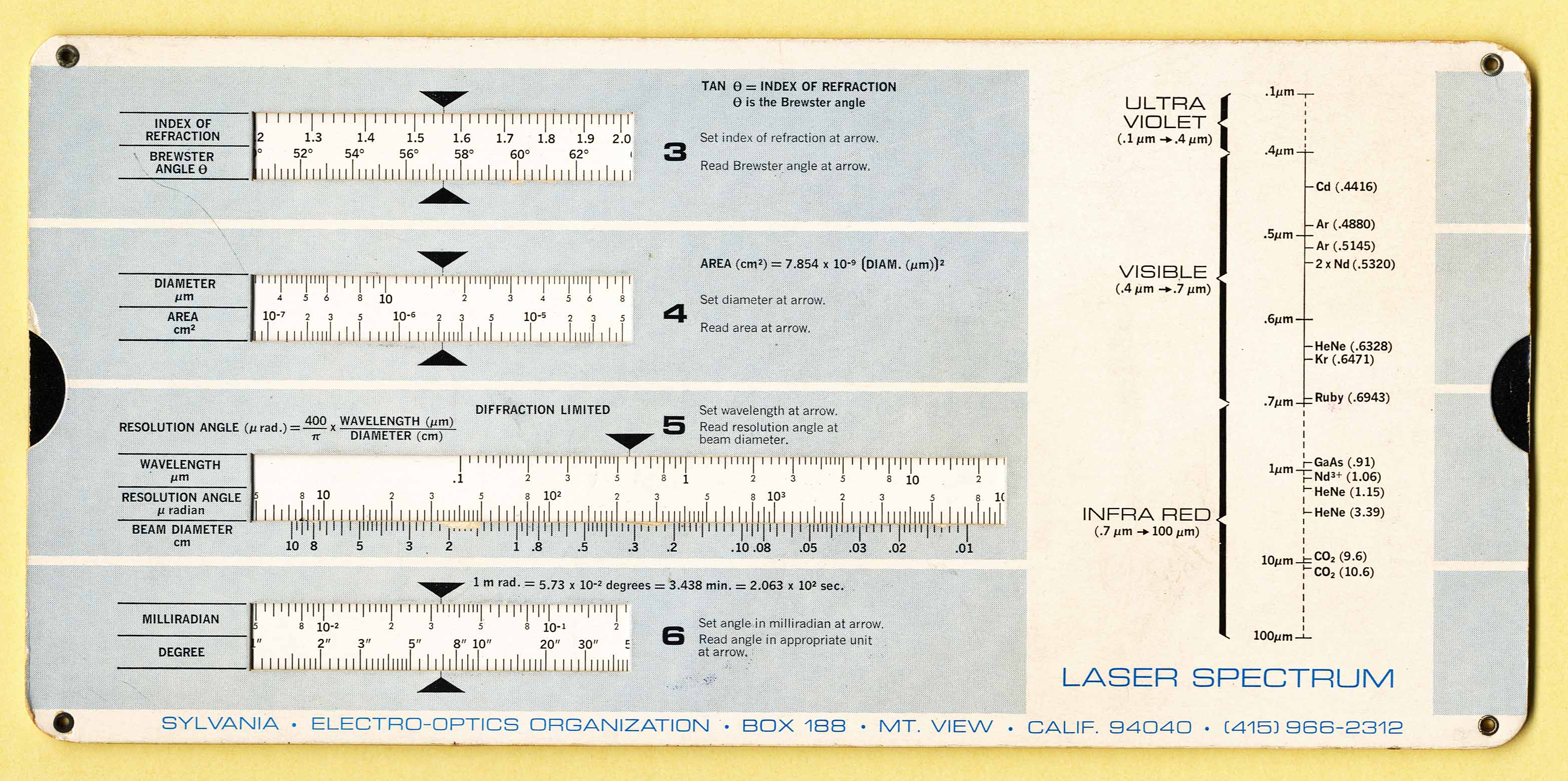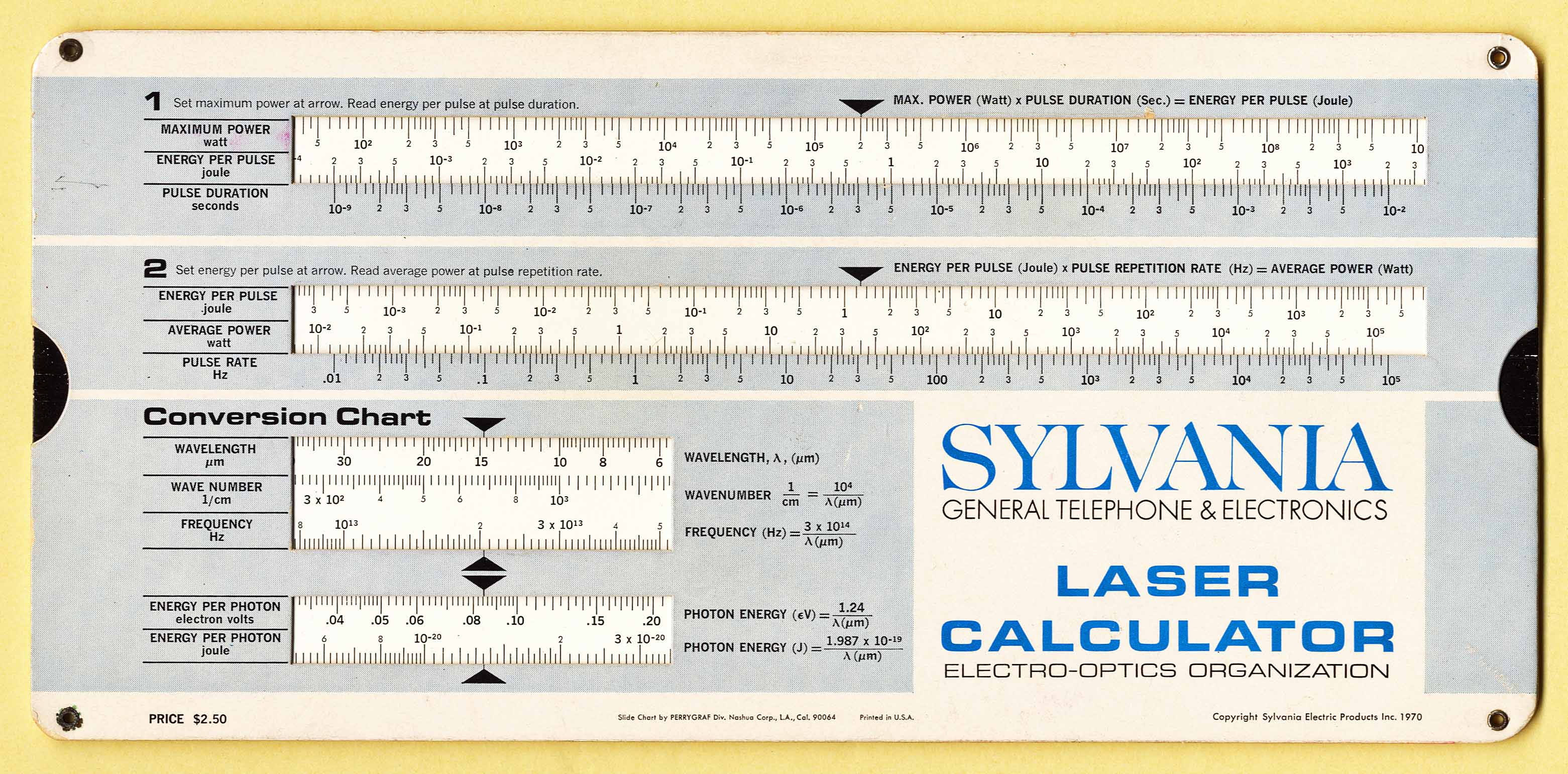 "Used to calculate various laser parameters including energy, pulse repetition rate, wavelength, frequency, index of refraction, etc."