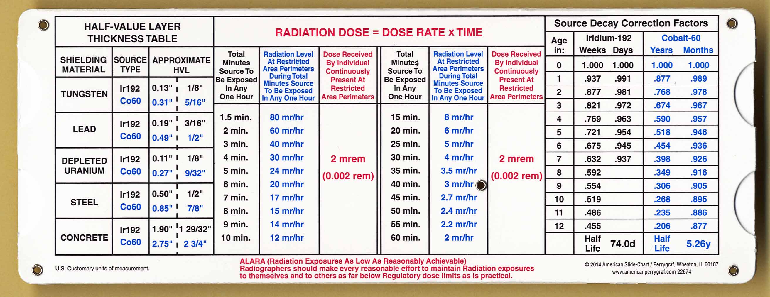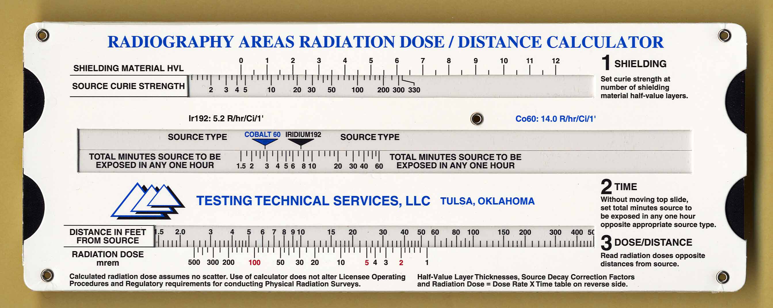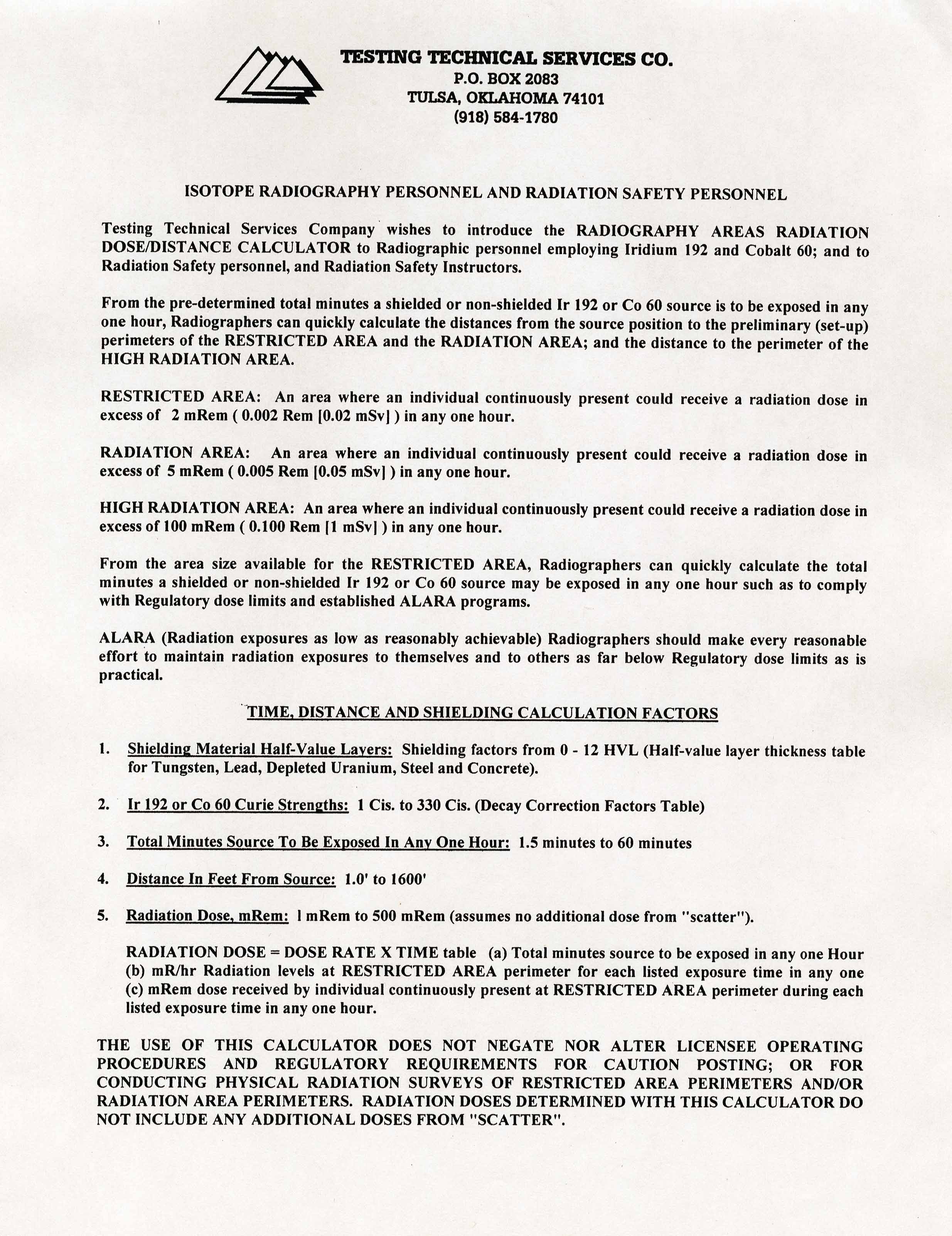 Used to calculate radiation dose for various shielding metals and thicknesses for Iridium 192 or Cobalt 60 radiation sources