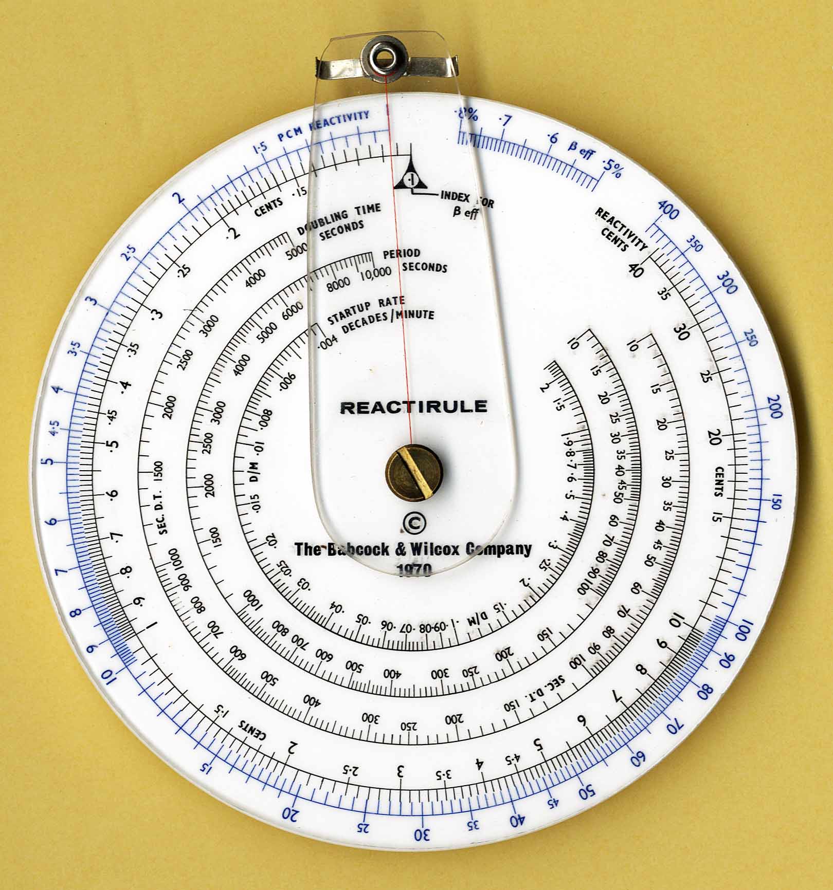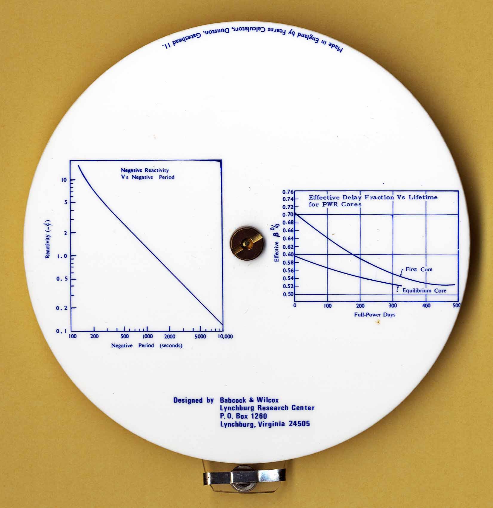Notes: "1) Front side has various scales used to calculate nuclear reactor operational factors depending on the core material, time and other factors 2) The reverse side has two graphs showing reactivity = 1 indicates the core is critical, negative ractivity indicates the core is subcritical. 3) See ""Westinghouse Technology Systems Manual Section 2.1 Reactor Physics Review"" for details."