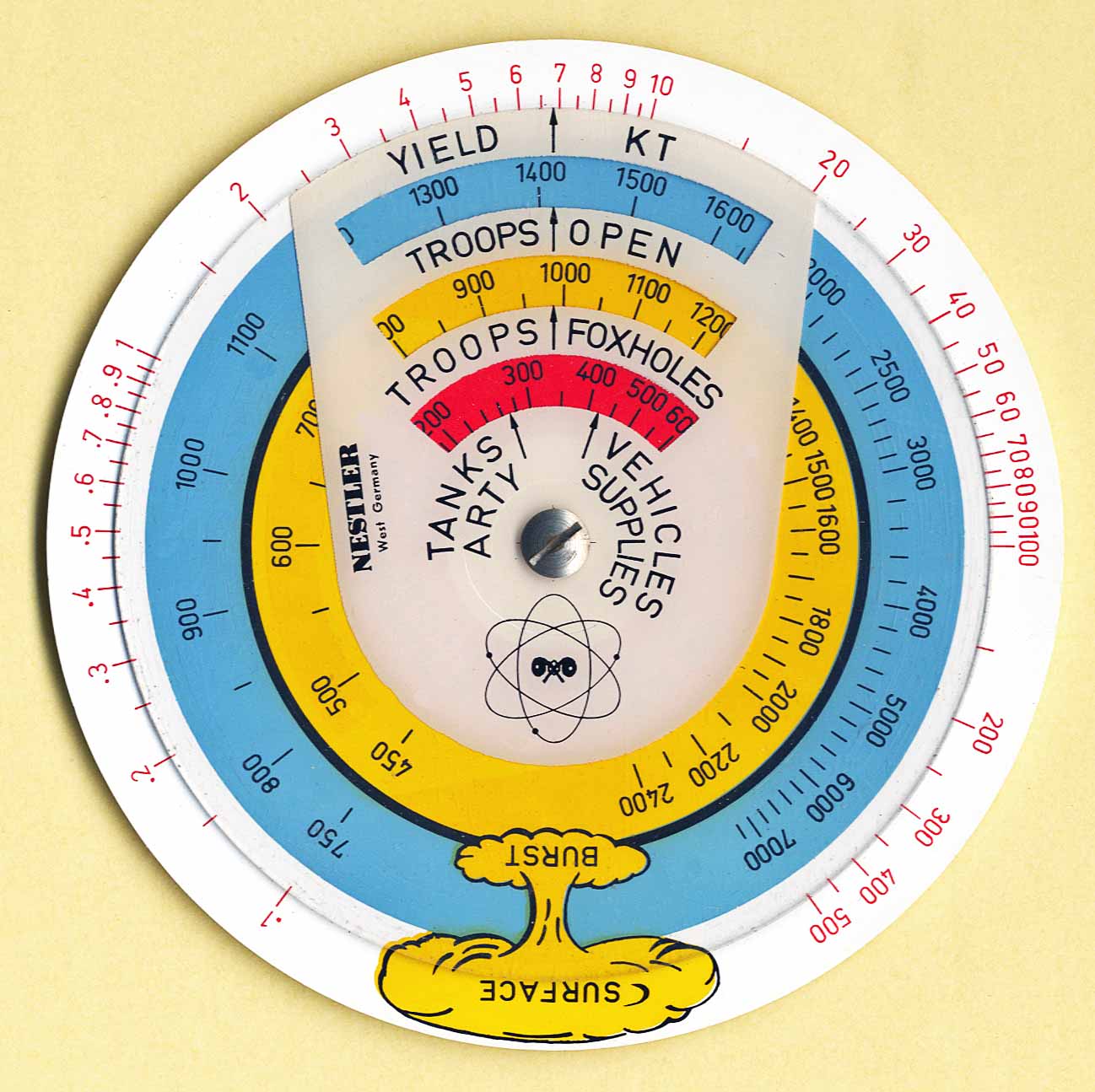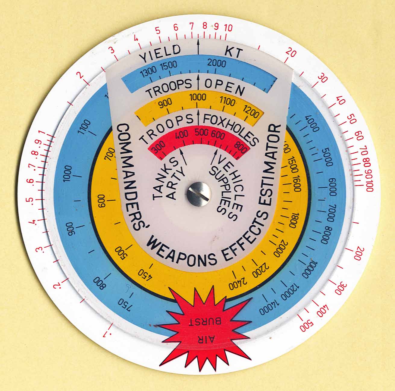 1) A U.S. Army version of the Commander's Nestler above. 2) Allows for the rapid evaluation of military radiological conditions for either ground burst or air burst explosions 3)Has small US Army Chemical Branch insignia.