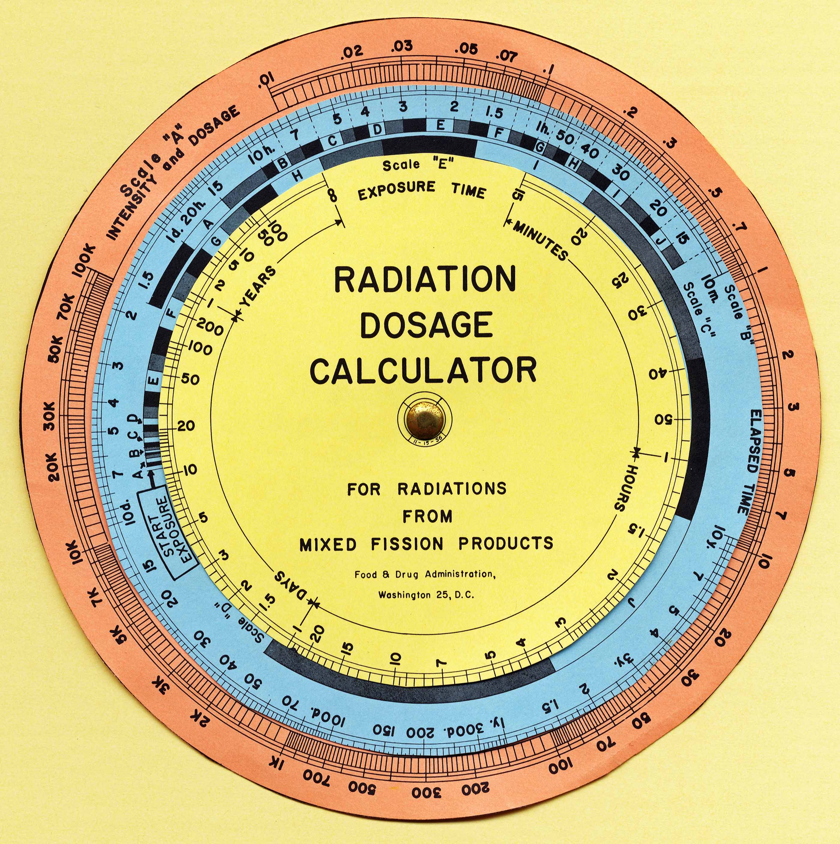 Notes: "1) Used to determine radiation dosage 2) This calculator consists of three concentric disks, Exposure Time, Elapsed Time and Intensity and Dosage 3) Came with a Technical Bulletin ""Radiation Physics and Bomb Phenomenology"" dated June 1959 (reprinted 9/1960)"