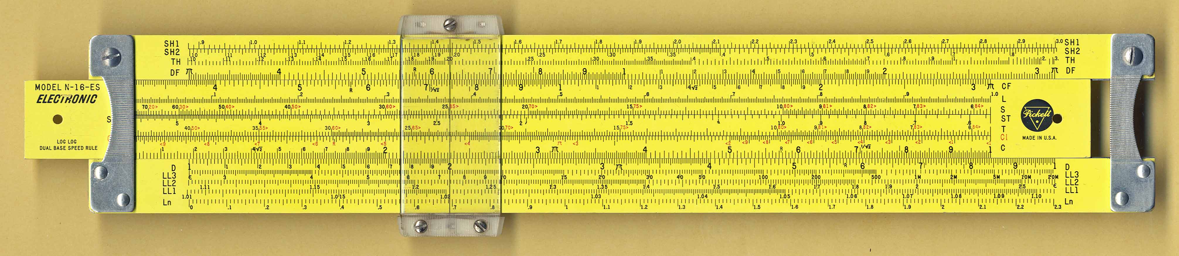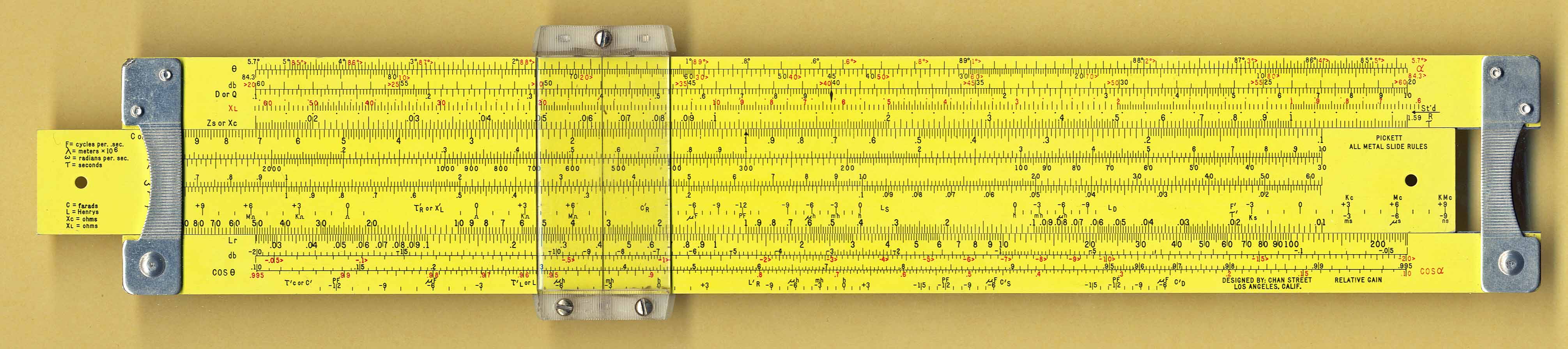 "Log Log Dual Base Speed Rule, special electronic scales designed by Chang Street, Los Angeles"