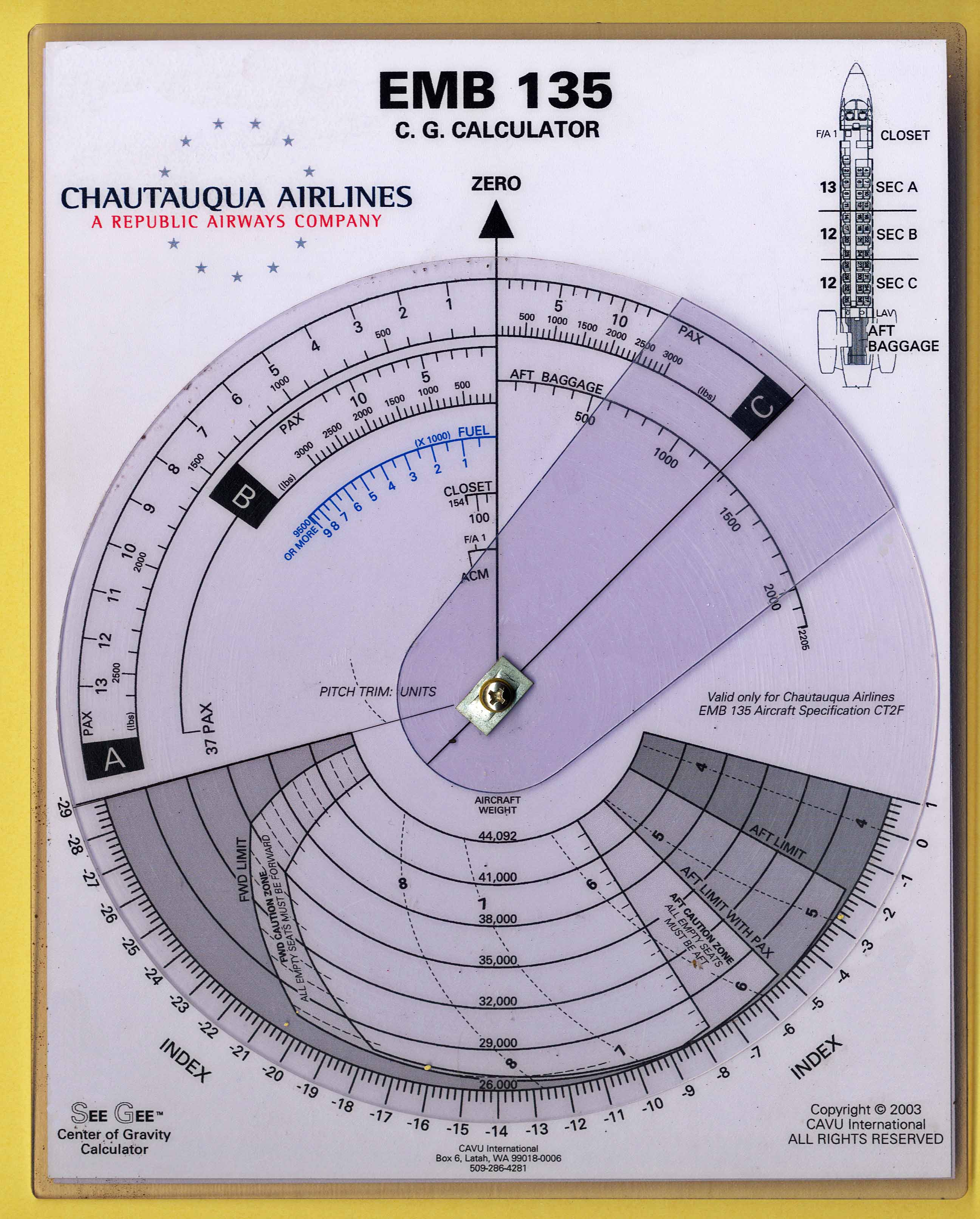 | Disk/Plate | Embraer / EMB 135 | Made by CAVU International for Chautauqua Airlines | Plastic | c. 2003 | 21.1 cm x 26.8 cm | Flight Management |