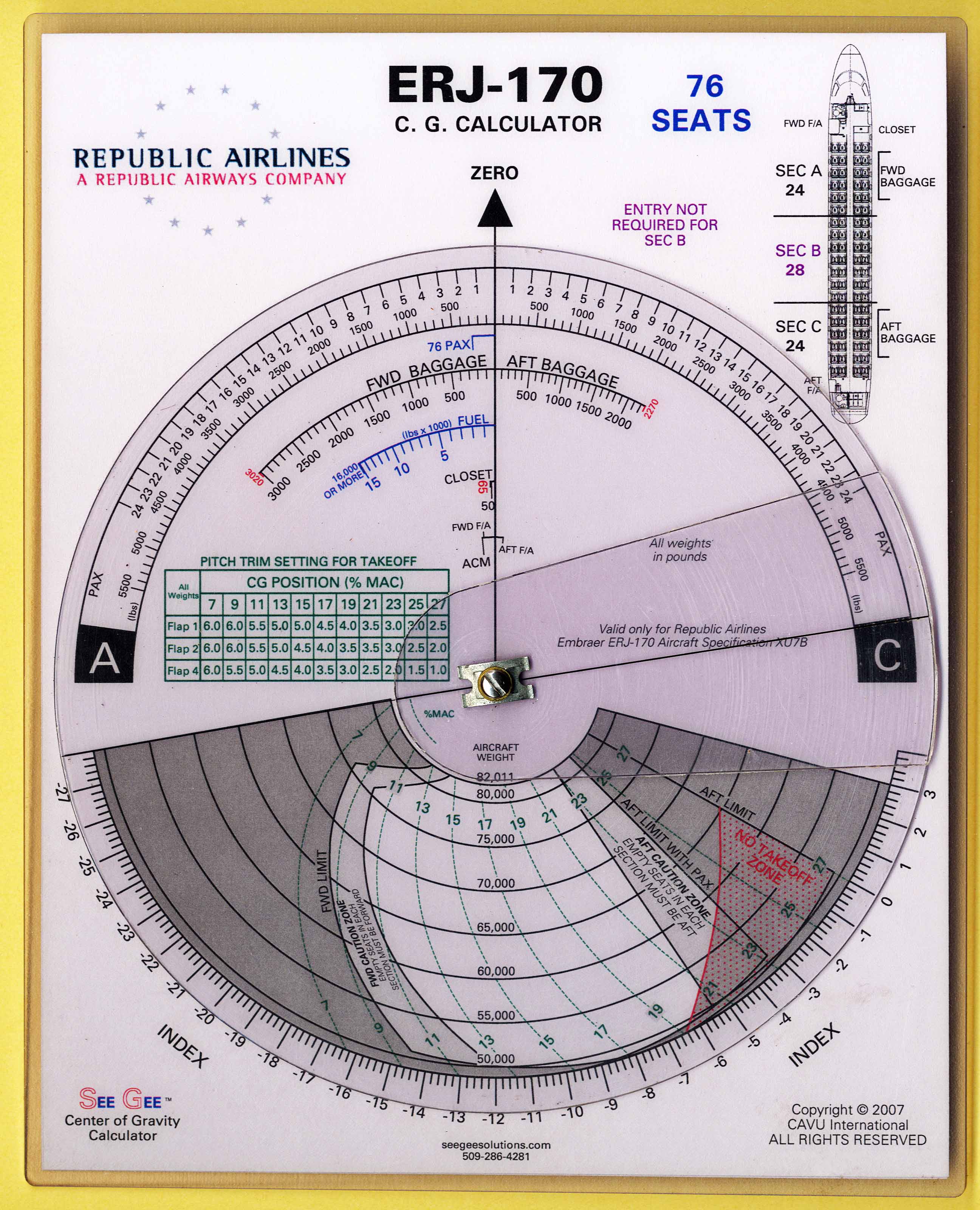 | Disk/Plate | Embraer / ERJ 170 | Made by CAVU International for Republic Airlines | Plastic | c. 2007 | 21.1 cm x 26.8 cm | Flight Management |