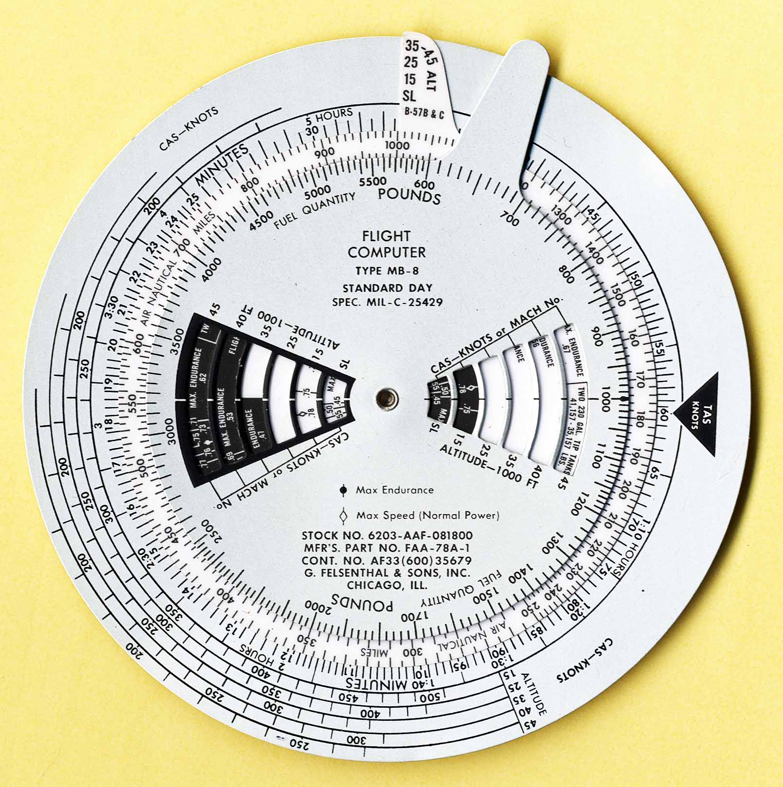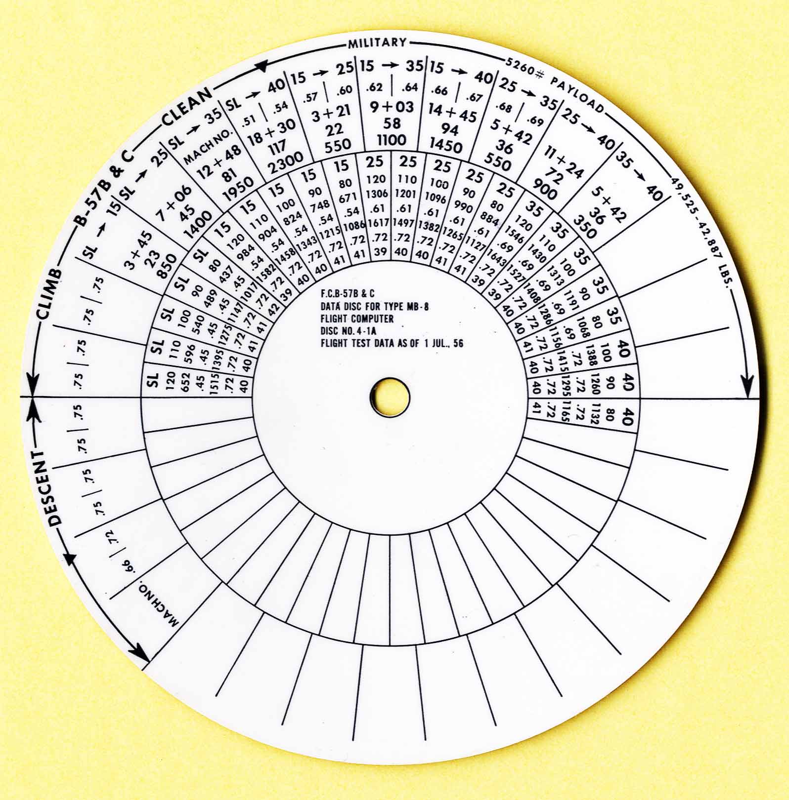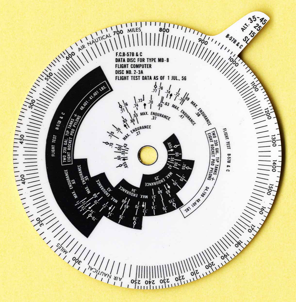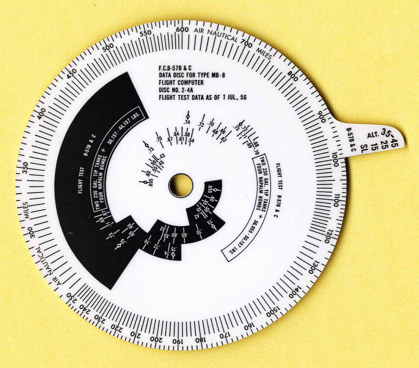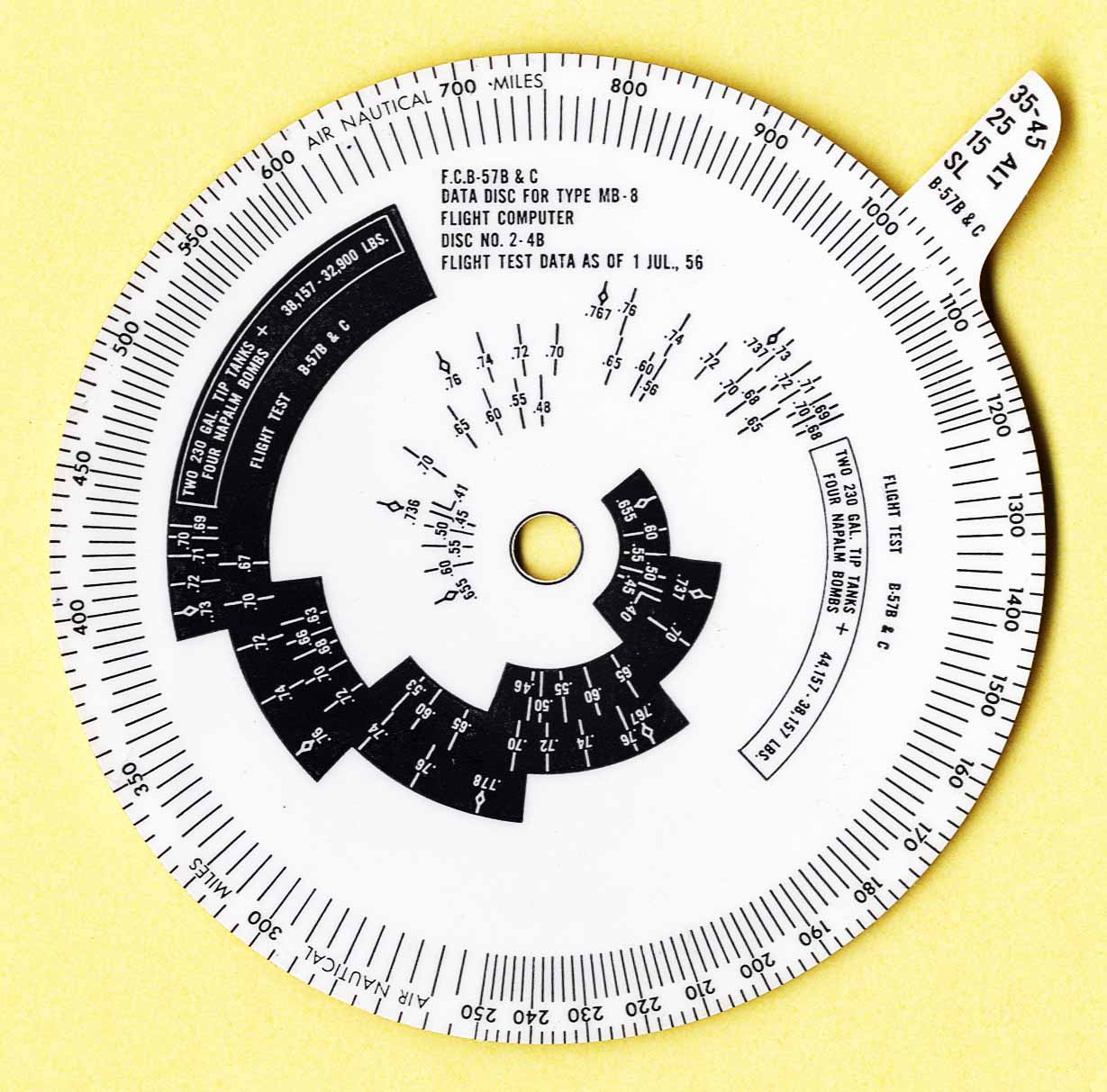 "1) Used to calculate fuel management, using altitude, speed, flight duration, climb and decent, distance etc. 2) The MB-8 used interchangable disks so it could be used for a wide variety of aircraft (see previous T33 and F100 examples)"