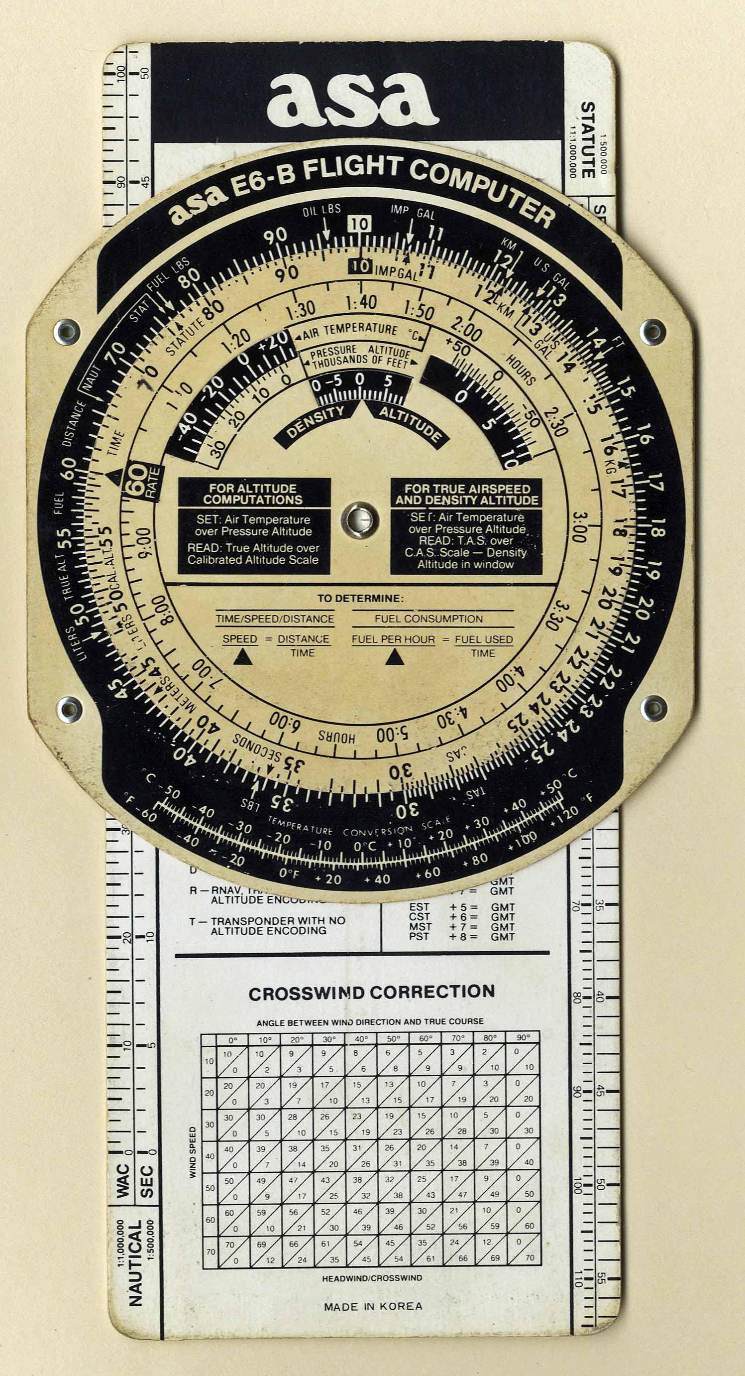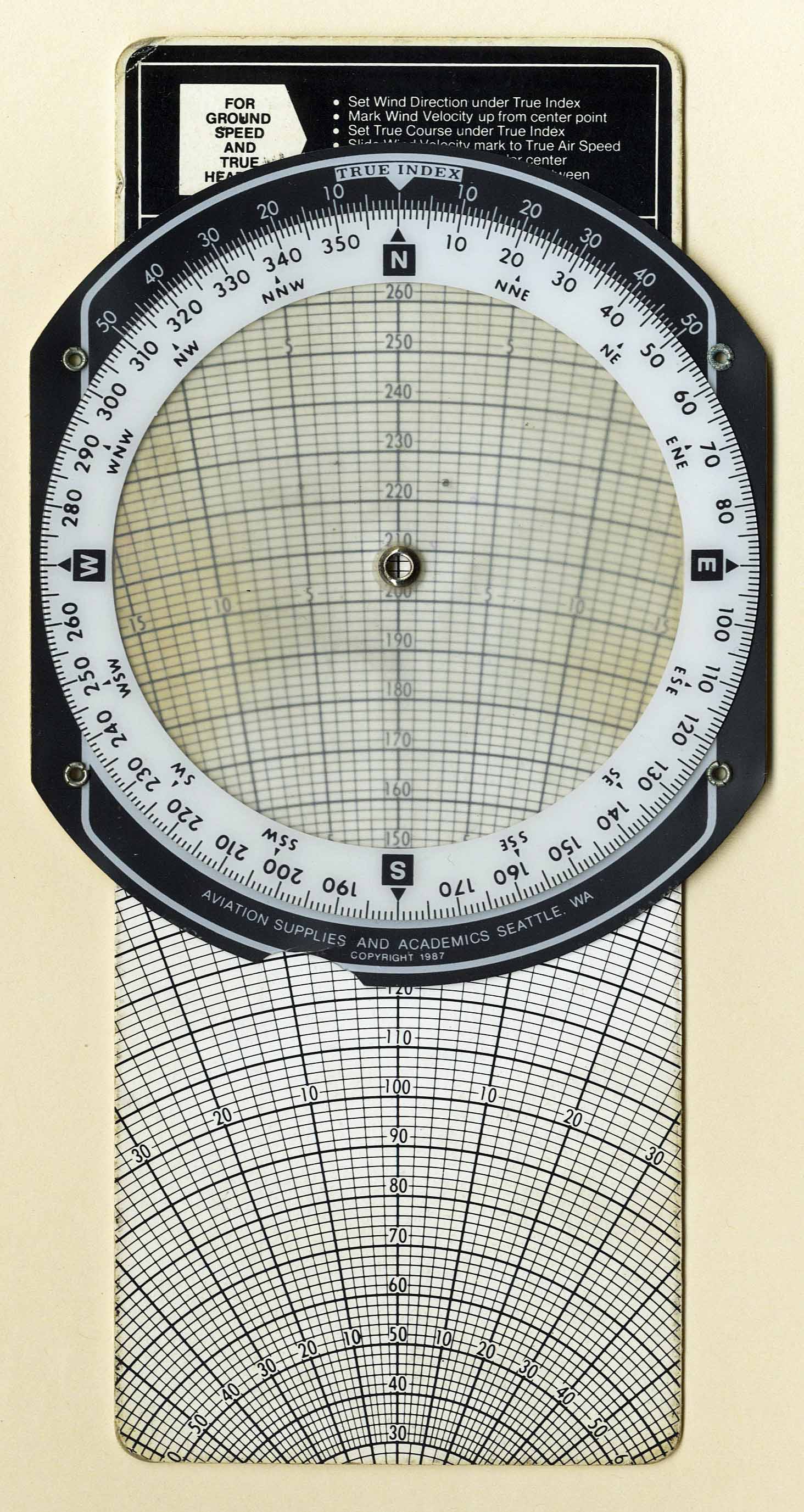 | Disk / Plate | Generic Instrument | "Aviation Supplies and Academics (Seattle, WA)" | Cardstock | c. 1987 | Dia. = 11 cm / 8.8 cm x 22.3 cm | Flight Management & Training |