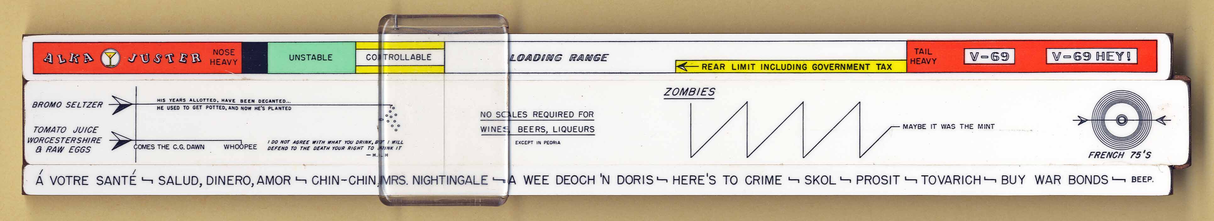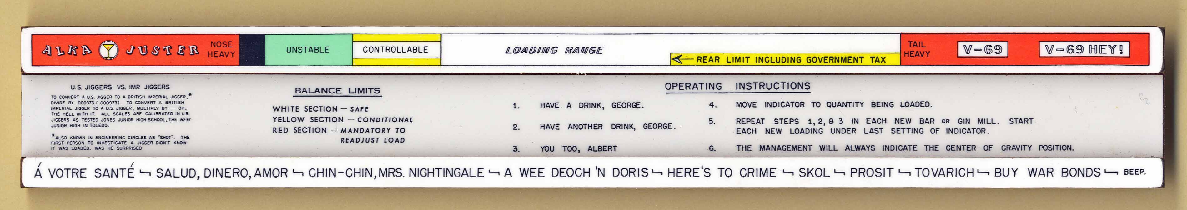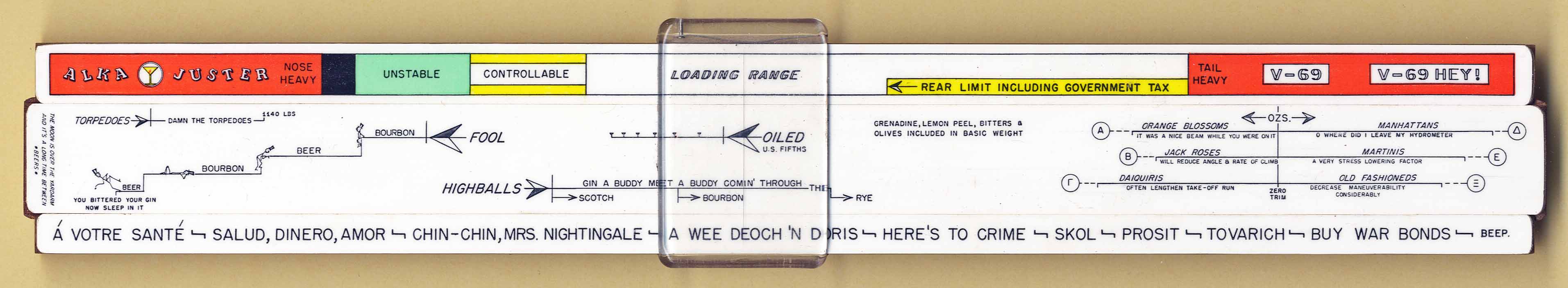 "Used by joking airmen to determine how "oiled" in US fifths and one's "fool" level"