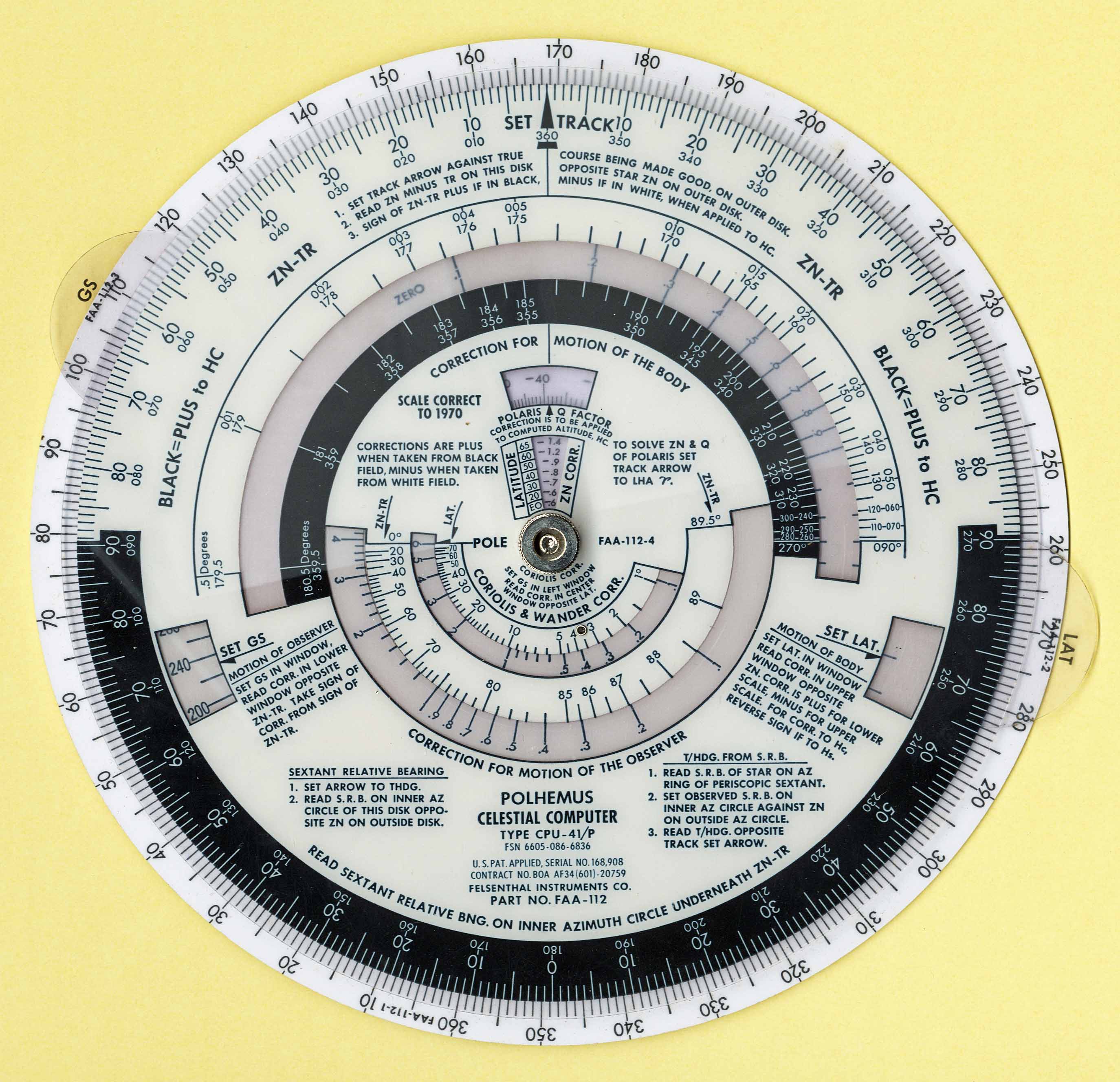 1) Polhemus celestial computer for use with a sextant and a star observation to determine a navigation course 2) Comes in a large case with several plotting plates.