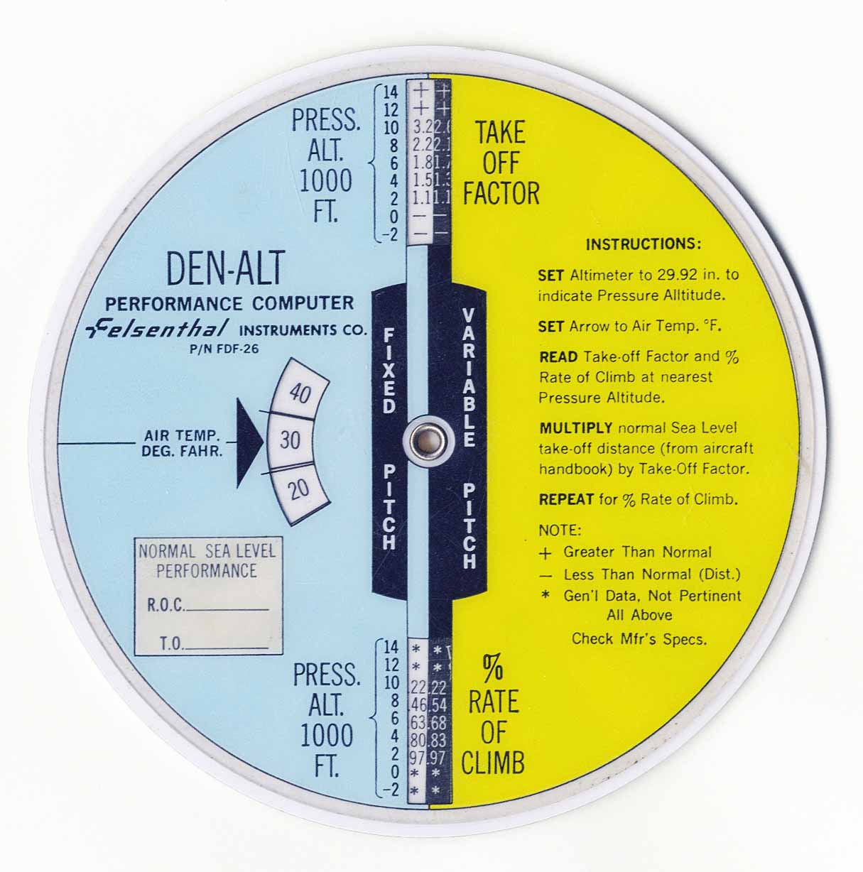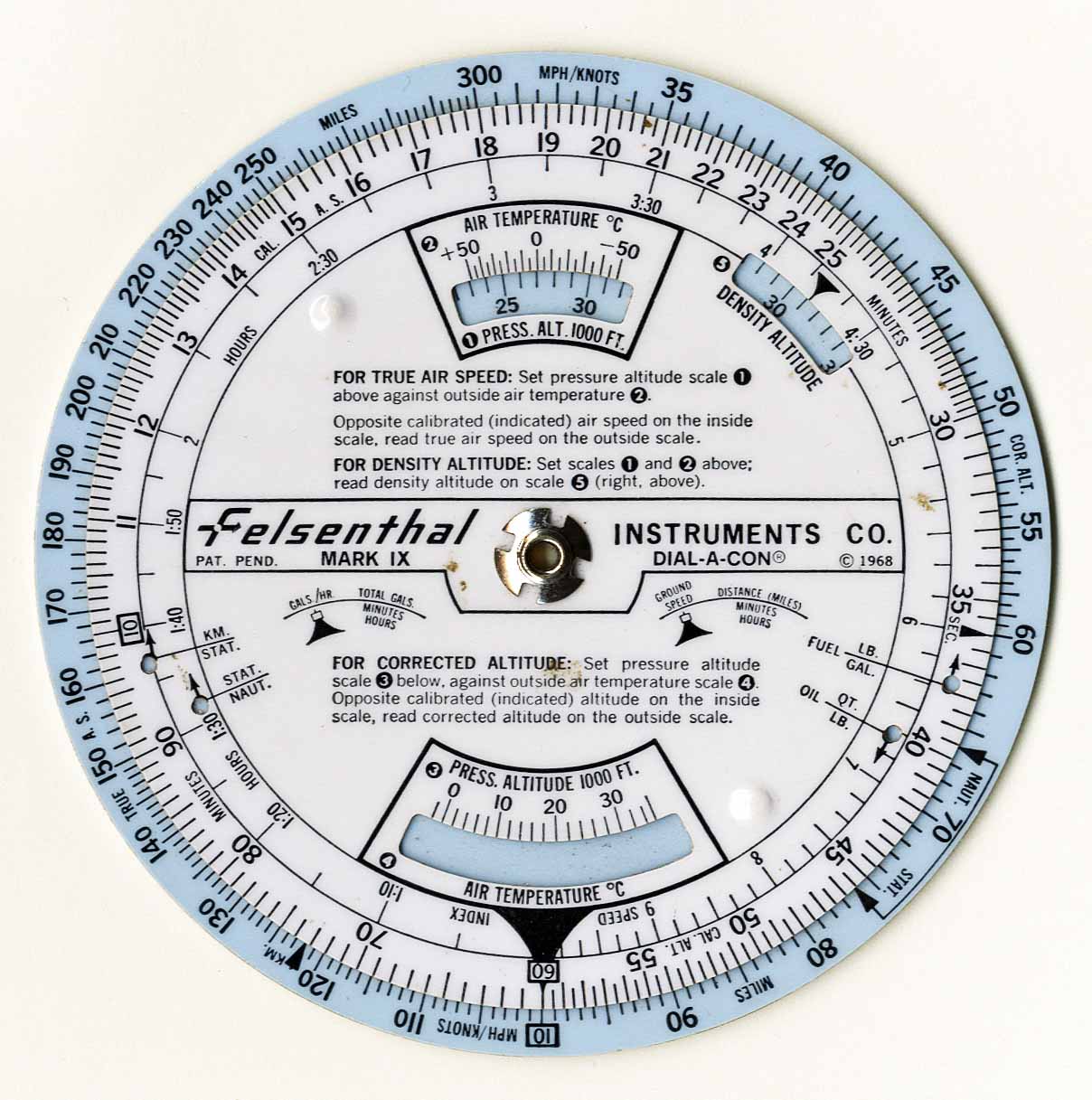"Used for aviation air speed, density altitude calculations, reverse has a Den-Alt (desity altitude) calculator for takeoff performance calculations"