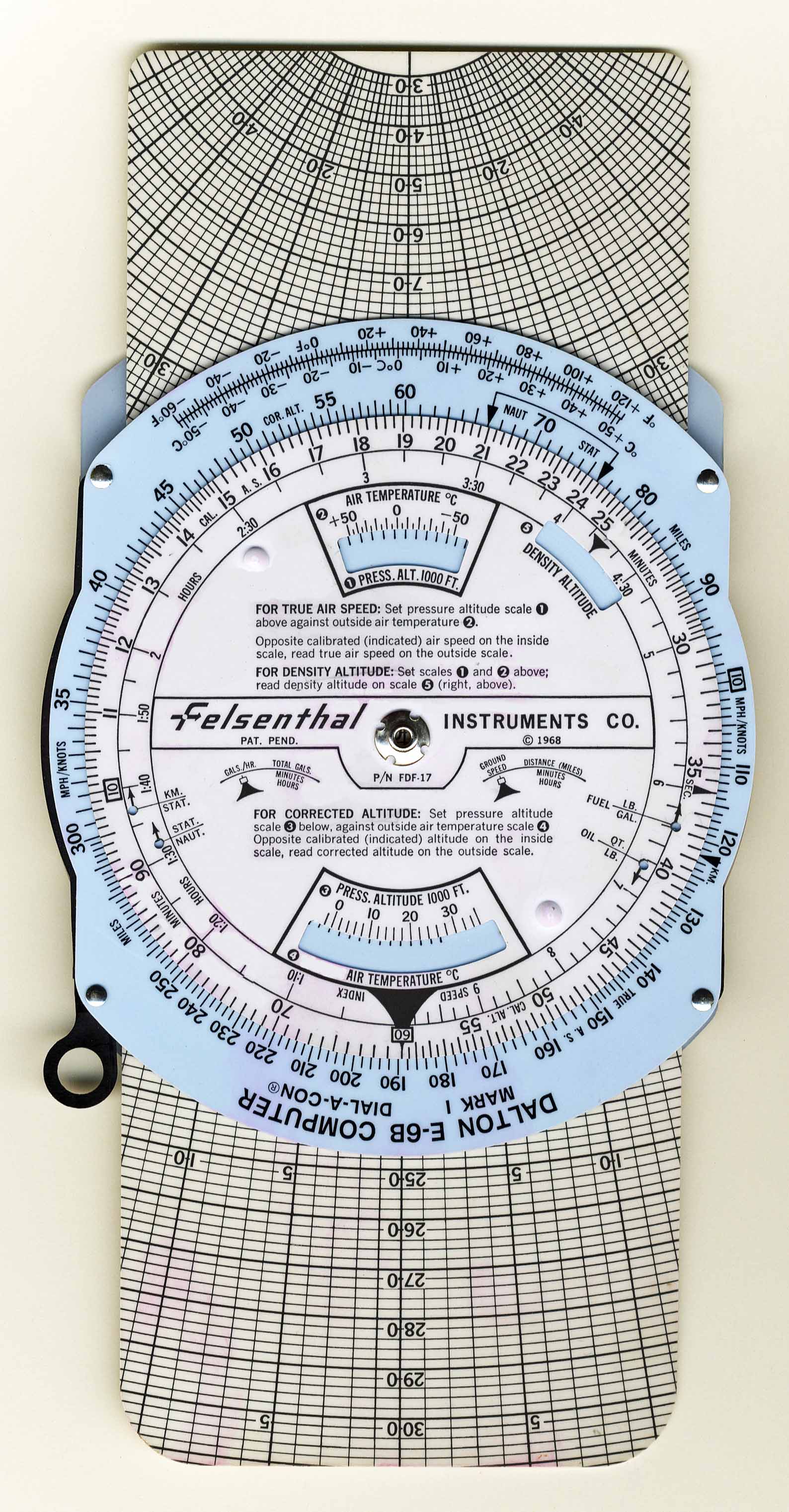 "E6-B Calculator for aviation calculations, reverse has wind triangle provision."