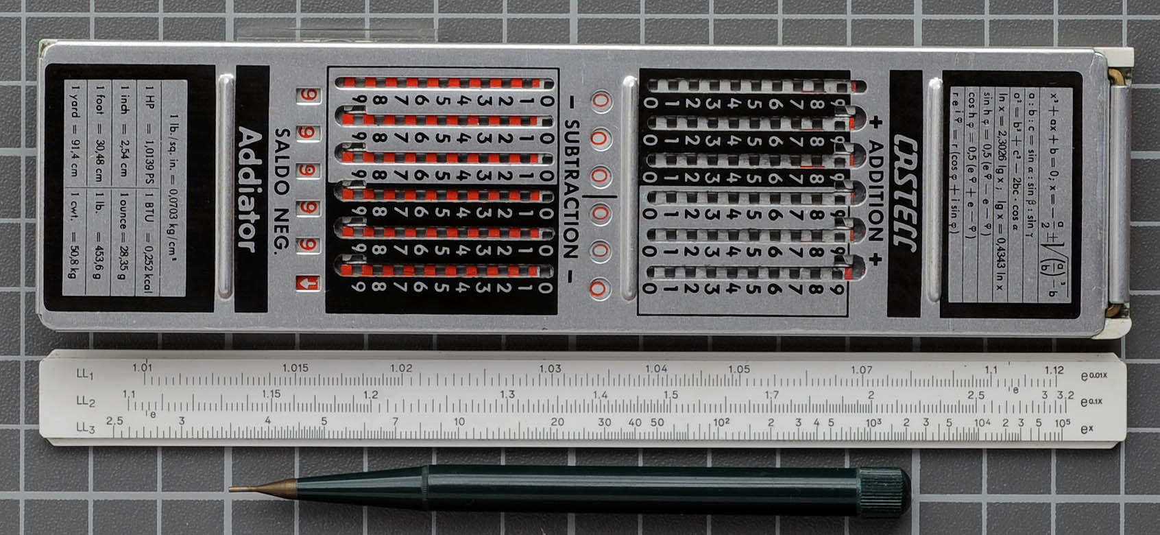 "The ""Addiator"": A slide rule and an adding machine combined."