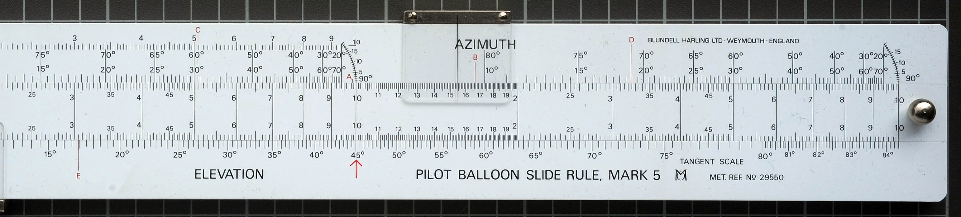 Notes: "See article J. Oughtred Soc. 5(2), p. 51, 1996: Feazel, The pilot balloon slide rule. My father, a weatherman in the U.S. armed forces in the Pacific Theater during WWII, took measurements of pilot balloons. I do not know whether he used slide rules…"